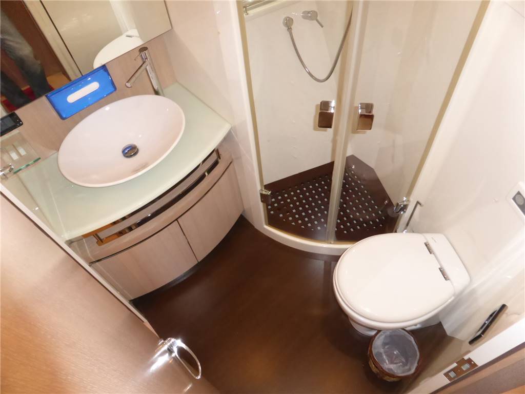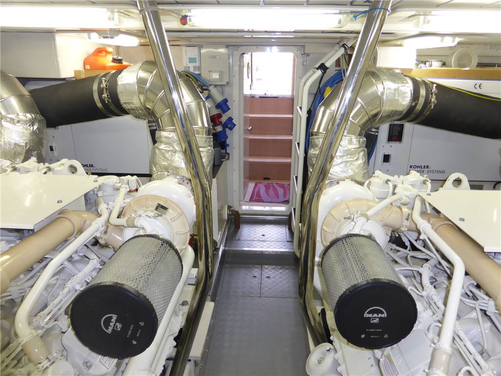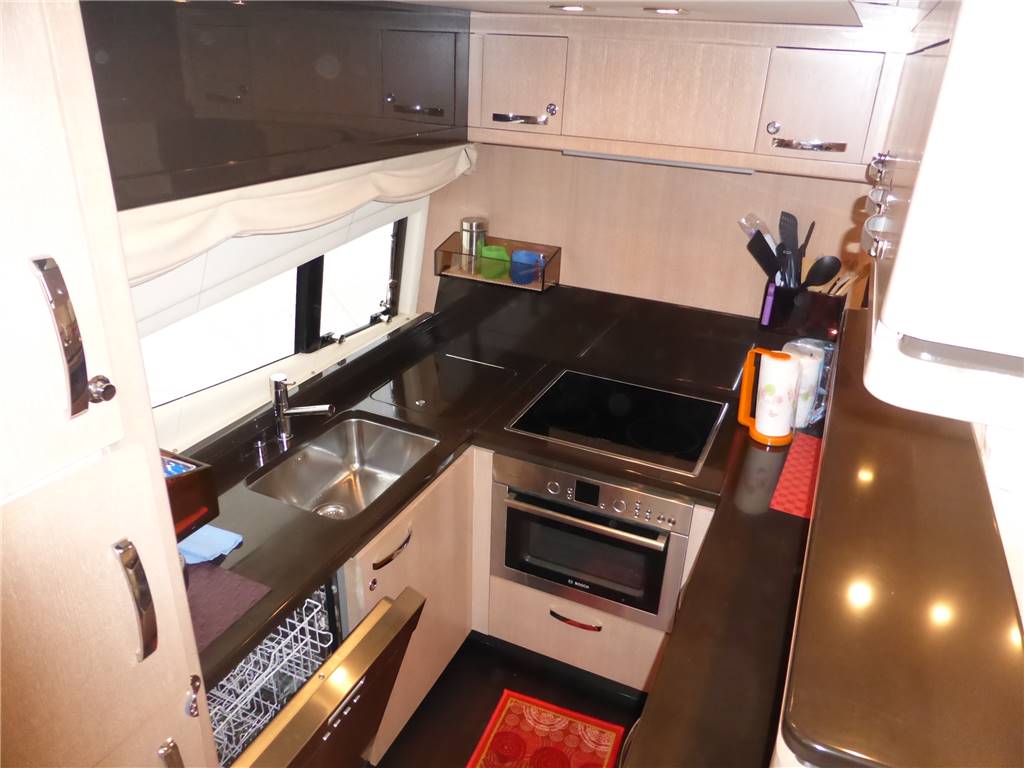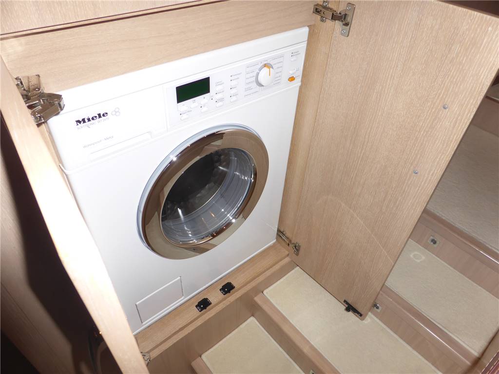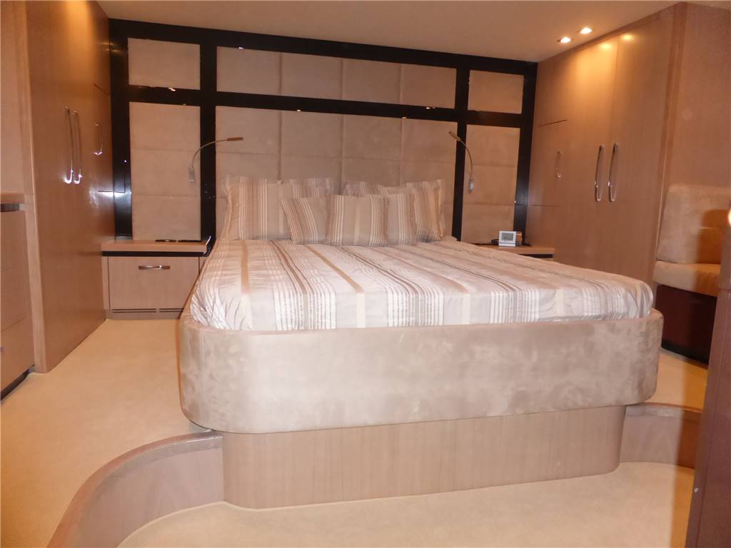 Notas de armamentoFaro poppa x ormeggio - 2 Winches tonneggio - Full teak - Elica di prua e di poppa - Luci Subacquee - Tender con fb - Gruetta opacmare sul fly per alo tender - Lavatrice, Lavasciuga - Lavastoviglie - Dissalatore 180LT - Doppia antenna Satellitare per internet e Sky con decoder digitale terrestre dvd - 2 Generatori KOHLER - Climatizzatore automatico tropicalizzato a doppia pompa di calore e con comando separato in ogni ambiente - icemaker - Impianto radio stereo cd Panasonic - Passerella idraulica maggiorata a scomparsa - Cabina equipaggio allestita - Vericello elettrico con telecomando , ancora Bruce con 100 mt. catena maggiorata + ancora di rispetto - Tv Lcd Toshiba in ogni cabina e salone - casse acque nere - copripozzetto e finestrature complete - monitor pozzetto - cuscinerie complete - dotazioni di sicurezza complete - luci di cortesia a led complete color blu Pozzetto passavanti e plancetta di poppa in teak - mobile fly completo con lavabo, frigo e barbecue - scaletta bagno movimento apertura elettrica - Dotazioni sicurezza normativa italiana - Copri finestrature laterali copertura parabrezza e tenda camper posteriore.