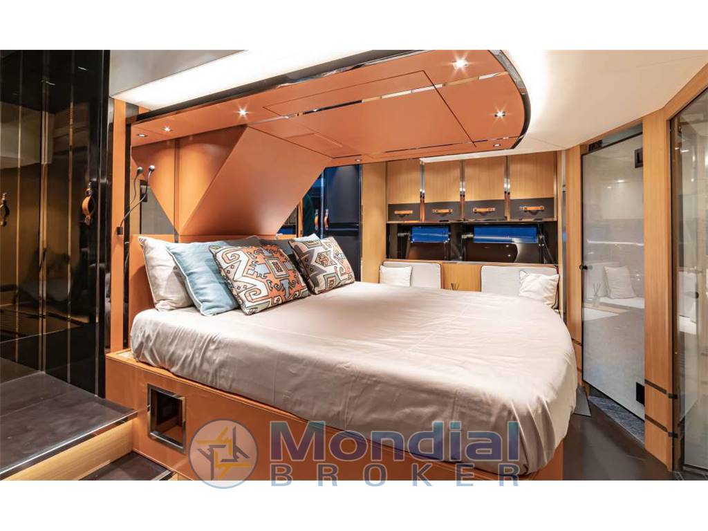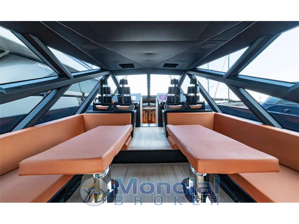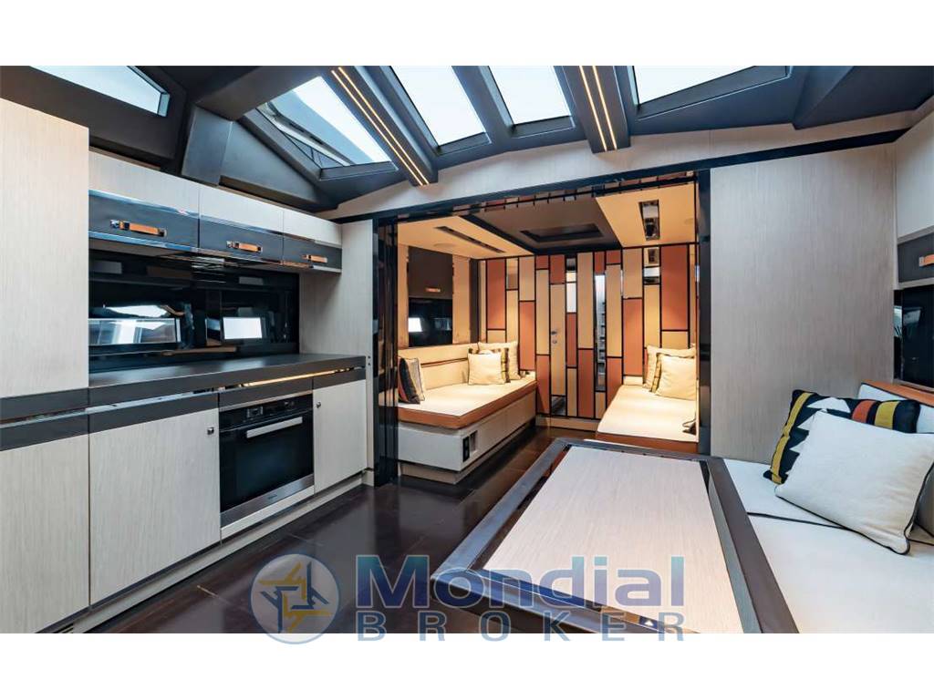 Notas internas1 x Owner’s Cabin with en suite facilities 1 x Guest Cabin with en suite facilities 1 x Cabin for up to 1 x crew Seating capacity for up to 16 pax Safes in Owner’s & Guest cabins The glass superstructure, a unique and distinctive feature of the Wally Power line, offers shelter and protection to the cockpit and living areas. It can be closed via an aft folding door. Under the glass superstructure, the navigation and control station is to starboard. The central social area features to starboard a 6-8 person dining table and to port a lounge area with a coffee table that can be converted into a second large dining table. Aft is the sunbathing pad with cushions. GALLEY EQUIPMENT 1 x Dishwasher 1 x Oven Bosch 2 x Fridge 1 x Icemaker Notas de la instrumentaciónAUTOMATIC PILOT SimradECHO SOUNDER Simrad RADAR Simrad GPS Simrad CHART PLOTTER Simrad VHF Simrad MONITORING 2 Boning ENTERTAINMENT EQUIPMENT Sat. TV connection Sat. Phone connection Samsum TV in Owners cabin Samsumg 55”TV in salon Samsumg TV in kitchen CD Player Fujon sound system Cockpit Speakers Bow sunbed speakers Stern sunbed speakers Notas de armamentoPROPULSION 2 x Superfice Drive Top System Mod TS85 (Serviced 2022)BOWTHRUSTER Sea Master 240 kg GENERATORS 1 x Cummins/Onan 22.5 MDKBT - 22,5kW GENERATORS HOURES 2106 hours as of October 2023 SHORE POWER 1 x Inlet for shore power CHARGERS 1 x Battery charger AIR CONDITIONING 90.000 BTU HEATING Frigomar HOT WATER SYSTEM 1 x Boiler 80 Litres BILGE PUMP 1 x Electric |