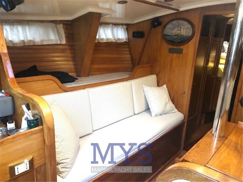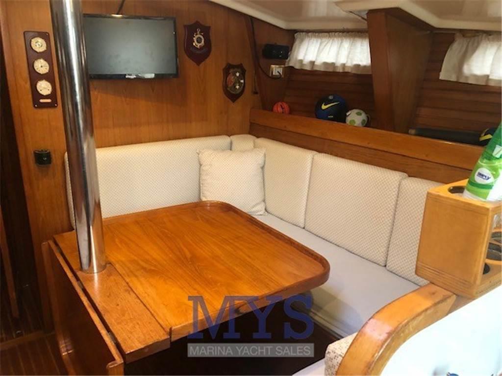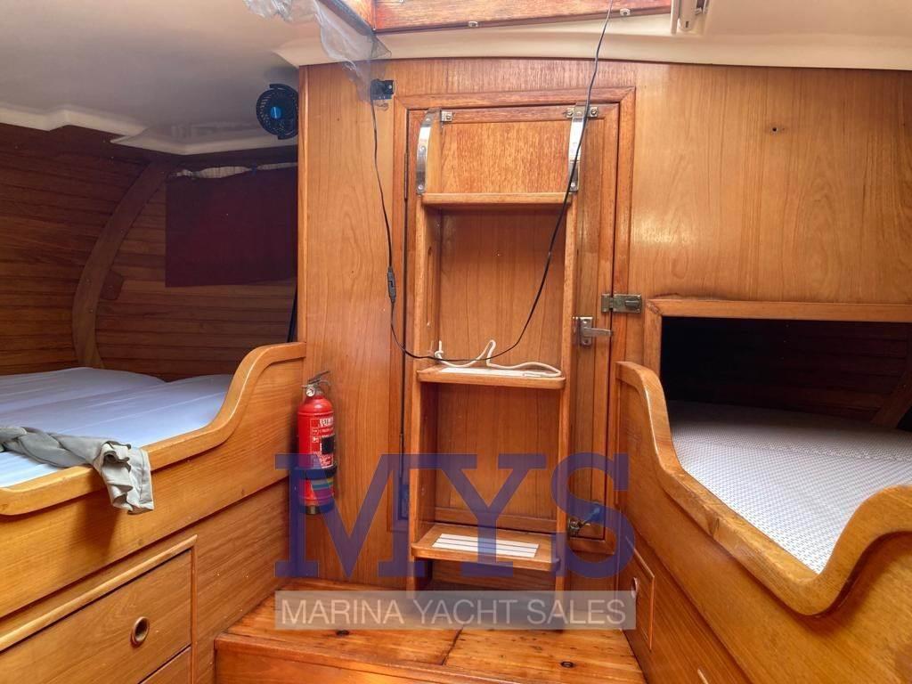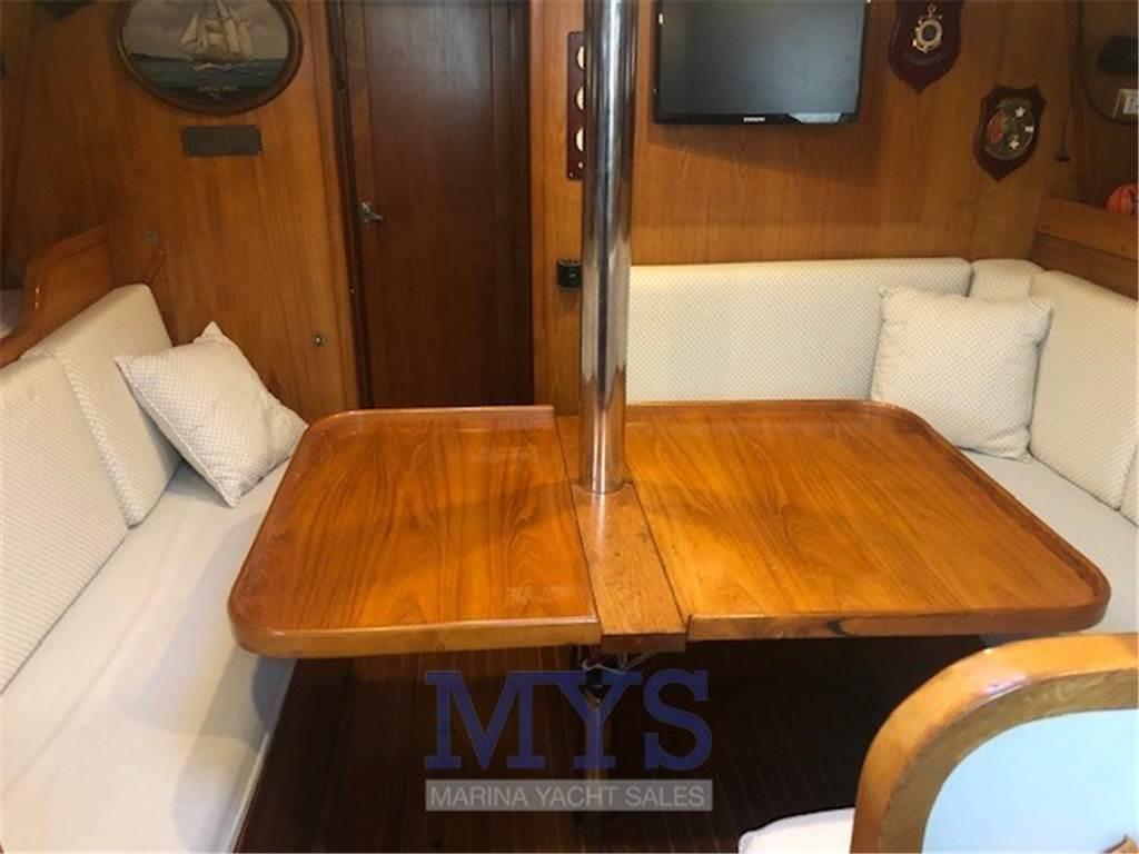 Notas internasCabina di prua con letto matrimoniale a V e bagno dedicato Cabina di poppa con due letti songoli e bagno dedicato Bagno a poppa con lavandino, wc manuale, carabottino per doccia Dinette con tavolo da pranzo e grande divano a C. Due letti singoli posizionati sulle murate della dinette Cucina a C dotata di lavello, frigo a pozzetto, forno e fuochi Notas de la instrumentaciónPlotterEco Log Stazione vento Autopilota VHF Elica di prua Batterie Caricabatteria Prese interne 12 V Prese interne 220 V Altoparlanti Radio e stereo Autoclave Pompa di sentina elettrica Pompa di sentina manuale Doccia esterna Spiaggetta di poppa Tavolo in pozzetto Pozzetto in teak Ponte in teak Salpancora elettrico Ancora Cucina Fornello Frigo Notas de armamentoRanda steccataLazy bag Avvolgifiocco Mezzana 3 Spinnaker Tormentina 2 Tangoni Vang Winch n.6 Sprayhood Cuscineria pozzetto Copertura timone Copertura tavolo pozzetto Di seguito un elenco delle sostituzioni effetuate negli anni: 2021) riverniciatura - rasati tutti i legni interni - montato doppio lavandino in cucina - alternatore nuovo - pompa acqua di mare nuova 2020) 6 batterie nuove - revisionato impianto elettrico 2018) raiser d'acciaio nuovo - turbina nuova 2015) scafo ripitturato a gealcot 2012) sartiame nuovo - 8 prese a mare - plexiglass degli oblo - allargata plancetta a poppa - montata timoneria idraulica. |