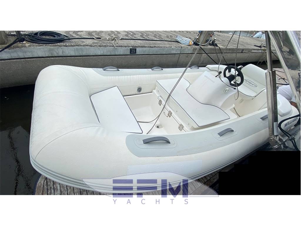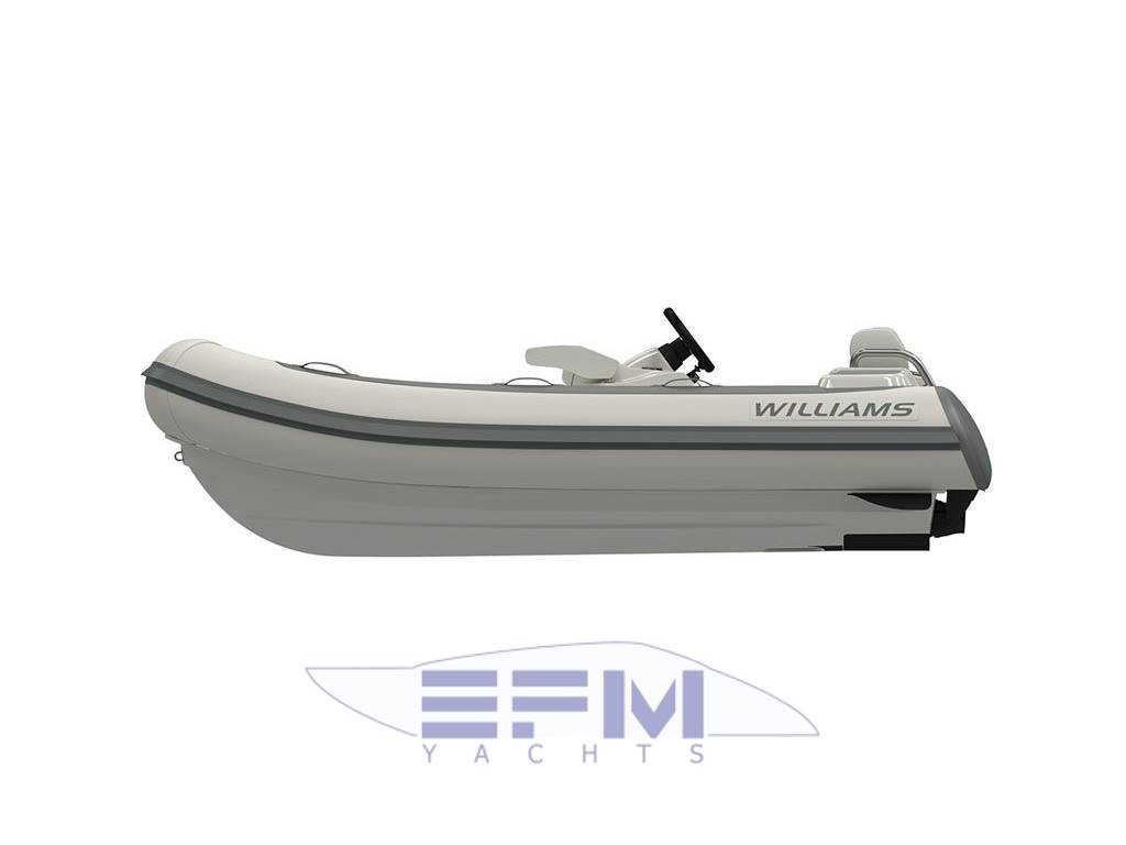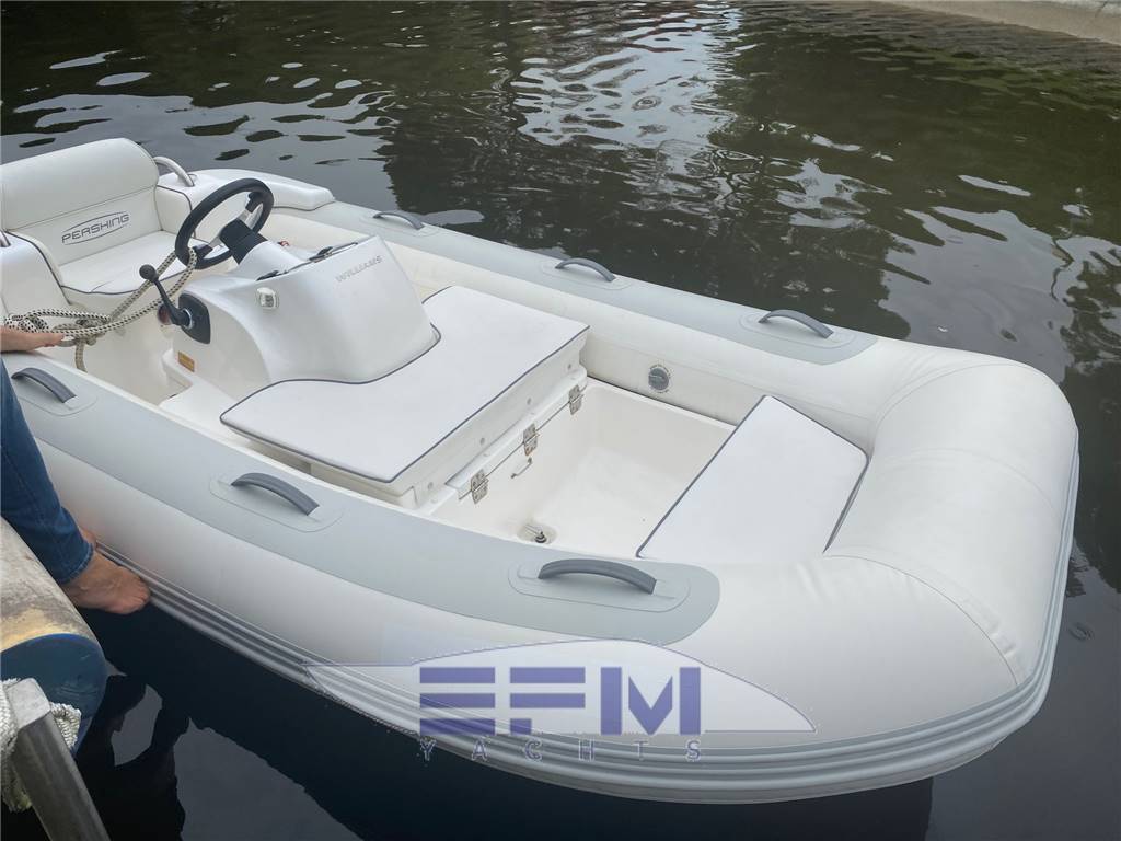 Notas internasWilliams 325 Turbojet fitted with a 100hp WEBER Engine giving a top speed of 40mph. It is an entry level range for Williams, offering customers a perfomance jet tender, and opening up ownership to boaters of 18-22 mt. Offering a package not be underestimated, it is powered by the industry-leading 100 hp engine and weighs in at just 320 kg. Boasting the same uncompromising quality, reliability, stability and maneuverability that all Williams models are renowned for, there is simply no other tender that can offer the same performance for its size in the market. Due to the unprecedented popularity of the Williams turbojet tenders there is limited availability.