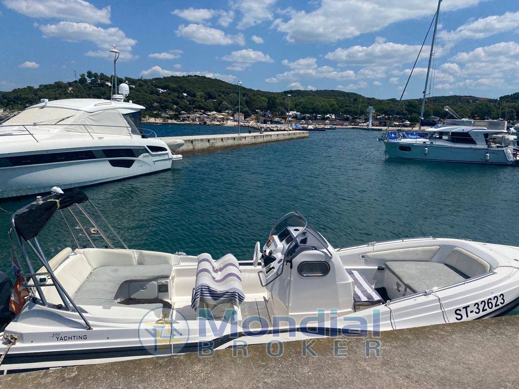 Notas internasNotas de la instrumentaciónStrumenti di navigazione Garmin, GPS.Notas de armamentoParabrezza, Timone e corrimano inox, Scaletta risalita inox/legno; 4 bitte, 5 maniglie inox, 2 tientibene inox a prua; Musone inox salpancora completo di scudo inox (paracolpi), Ancora inox 9kg, 3 molle a gas per coperchio gavoni poppa e prua; Cuscineria completa prua e poppa, Schienale di poppa imbottito diviso in 2 parti utilizzabile anche come prolunga del prendisole poppiero, Interno fiancate e frontale di prua imbottiti. |