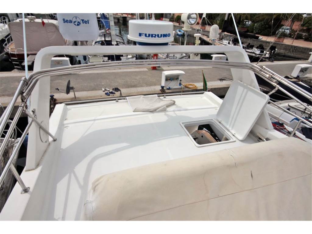 Notas internasNotas de la instrumentación2 Ecoscandaglio (Koden CVS 832C), Bussola, Pilota automatico, Radar (Furuno), Radio VHFNotas de armamentoAllestimento tecnico e di coperta:2 Caricabatterie, Ancora, Autoclave, Batterie, Camminamenti laterali in teak, Doppia timoneria, Elica di poppa - sterntruster, Elica di prua - bowtruster, Flap idraulici, Indicatori Flaps, Passerella (idraulica), Pompa di sentina automatica, Pompa di sentina manuale, Porta ingresso, Pozzetto Teak, Presa 220V banchina, Ripetitore strumentazione, Salpa Ancore Elettrico, Tender (con motore fuoribordo). Dotazioni domestiche di bordo: 4 Telecamera (3 in sala macchine e 1 a poppa), Aria condizionata, Boiler, Impianto acque nere, Inverter. Intrattenimento: DVD, Impianto TV, Radio AM/FM, Stereo, TV, VHS Accessori da pesca: Portacanne. Cucina ed elettrodomestici: Cucina, Fornello, Forno, Frigorifero interno, Macchina caffè, Microonde, Piastra elettrica. Tappezzerie: Cuscineria completa, Tendalino. |