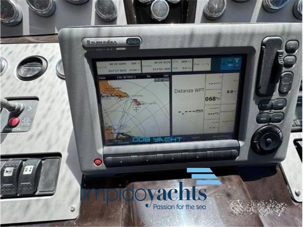 Notas internascabina OSPITI a poppa con letti in piano, 2 * WC separato nella cabina poppa, dinette trasformabile con tavolo regolabile, angolo cucina a sinistra con frigo, lavandino, piano cottura; ESTERNO prendisole di poppa con hangar, divano in pozzetto con tavolo, mobile living esterno con lavabo, grill CAN e frigo ISOTHERM , plancia comando con seduta pilota, prendisole di prua. Notas de la instrumentaciónstrumenti motore VOLVO PENTA analogici e digitali con doppio display multifunzione, manette elettroniche con cruise control, gps RAYMARINE C 90 W, vhf ADVANSEA FX-400, flaps LENCO con indicatori a led, pilota automatico RAYMARINE ST 70, bussola RITCHIE, luci via, tromba, stereo FUSION SIRIUS XM con comando da remoto FUSION + casse SONY, angolo di barra, elica di prua MAX POWER, RAYMARINE TRIDATA (profondità/velocità).Notas de armamentoStereo, Radio, Altoparlanti, Pompe di sentina, Doccia esterna, Doccia interna, WC marino elettrico, Impianto acque nere, Boiler, Autoclave, Scala da bagno, Tender, Garage Tender, Grill esterno, Tavolo esterno, Dinett esterna, Tappezzeria esterna completa, Finestrini, Hard Top, Pozzetto in teak, Passerella, Dinette interna abbattibile, TV interne, Impianto TV, Aria Condizionata, Generatore, Cucina interna, Piastra cottura, |