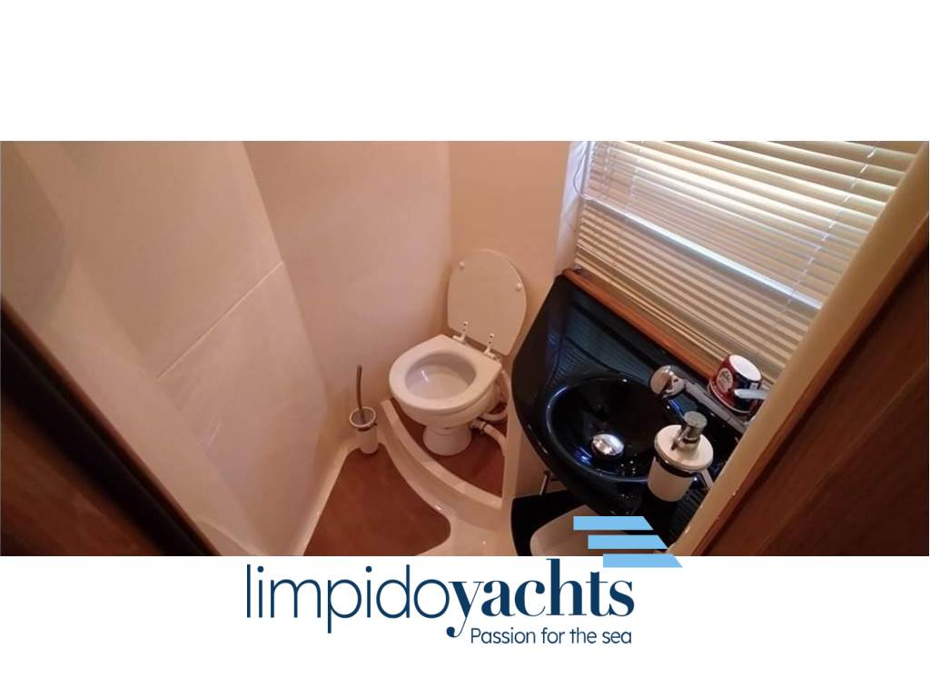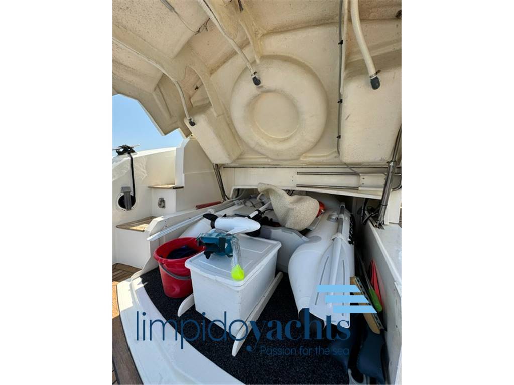 VARIE Pozzetto in teak Capottina di poppa Copricruscotto - Copritavoli Dispositivo alaggio tender Ancora inox Tender garage Passerella idr. a scomp. Forno a microonde TV LCD Gradini di accesso dinette in teak Cuscino trasf. dinette Cuscineria est. grigia Luci sommerse Plancetta di poppa in teak (2025) orientabile elettrico Parallelo batterie Bitte abbattibili a poppa Copriprendisole di prua Carena a zero - Installazione doppio maceratore a prua e poppa oltre ammodernamento impianto idraulico •Rina rinnovato 2024 •Tender nuovo mai messo in acqua lavori eseguiti 2025: sostituzione teak pedana poppa, tagliando motore e piedi, lucidatura totale |