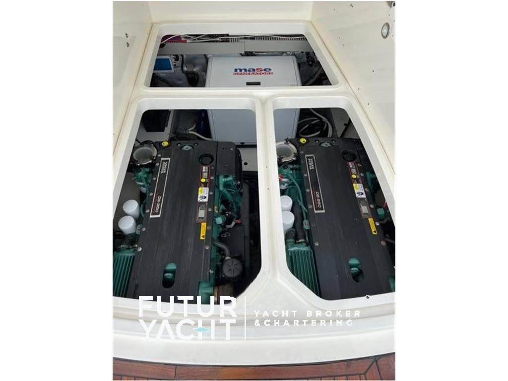Notas internasNotas de la instrumentaciónBussola, Computer di bordo, Contametri catena, Contamiglia, Ecoscandaglio, GPS, Log (Tridata Raymarine ST60+), Pilota automatico (Raymarine), Plotter (Raymarine C80), Radio VHFNotas de armamentoAllestimento tecnico e di coperta:Allarme motore, Allarme sentina, Ancora, Elica di prua - bow thruster, Flap idraulici, Piattaforma (in tealk), Pompa di sentina automatica, Pompa di sentina manuale, Pozzetto Teak, Presa 220V banchina, Salpa Ancore Elettrico, Scaletta da bagno. Dotazioni domestiche di bordo: Aria condizionata, BBQ/ Grill, Prese interne 12v, Prese interne 220v, WC marino elettrico. Intrattenimento: Altoparlanti, Impianto TV, Stereo, TV (due). Cucina ed elettrodomestici: Congelatore, Frigorifero esterno, Frigorifero interno, Microonde, Piastra in vetroceramica. Tappezzerie: Cuscineria completa |
