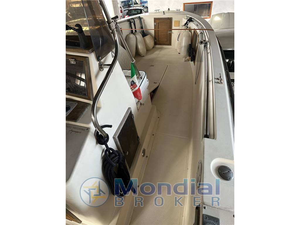 Barca con consolle centrale, vasca per il vivo. |