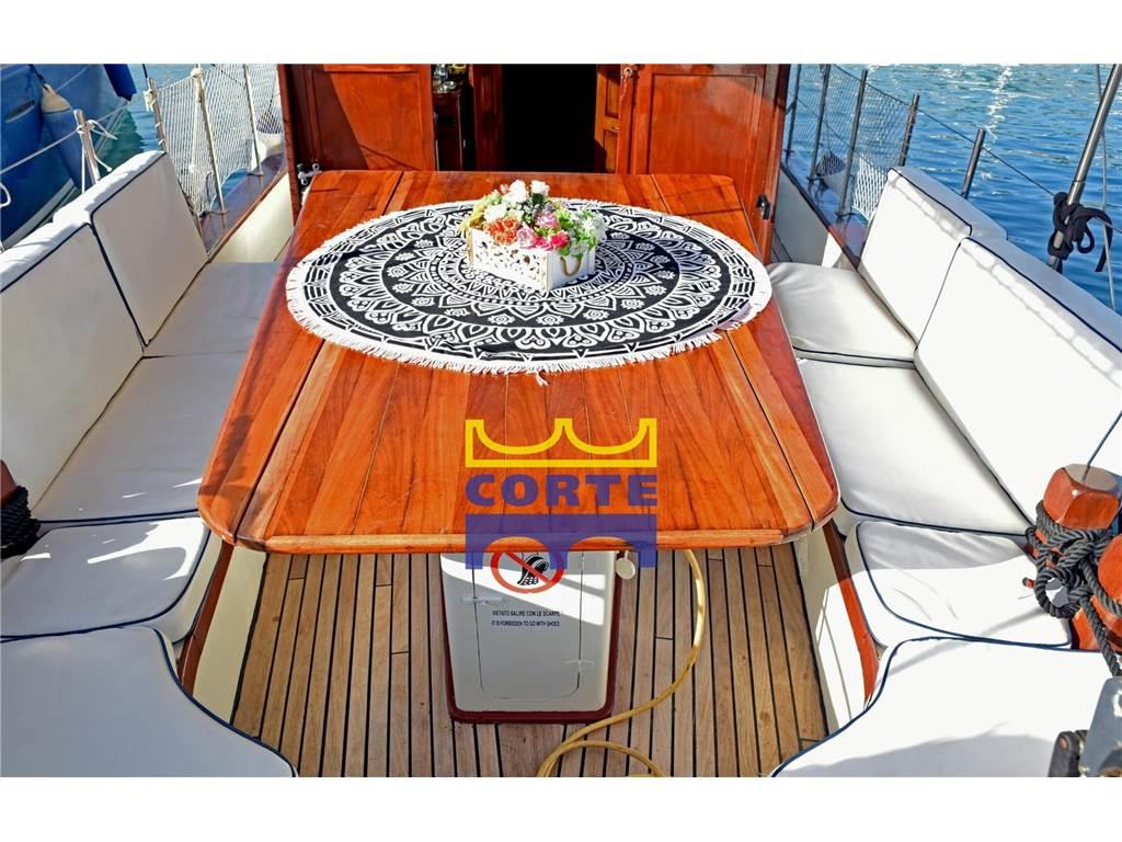 Notas internasNotas de la instrumentaciónBussola, Contamiglia, Display, Ecoscandaglio, GPS, Luci di navigazione, Radio VHF, Stazione vento (albero).Notas de armamentoAllestimento tecnico e di coperta:Alternatore, Ancora, Camminamenti laterali in teak, Doccia esterna, Elica di prua - bow thruster, Faro orientabile, Impianto antincendio, Passerella, Pompa di sentina automatica, Pompa di sentina elettrica, Pompa di sentina manuale, Ponte in teak, Porta ingresso, Pozzetto Teak, Presa 220V banchina, Salpa Ancore Elettrico, Scaletta da bagno, Tavolo pozzetto (ampio), Tender, Tromba, Winch tonneggio di prua. Dotazioni domestiche di bordo: Aria condizionata, Impianto acque nere, Inverter (3000 w), Pavimento interno in legno, Prese interne 12v, Prese interne 220v, Serbatoio Acque Nere, WC marino elettrico. Intrattenimento: Altoparlanti, Stereo. Cucina ed elettrodomestici: Congelatore, Cucina, Forno, Frigorifero interno. Tappezzerie: Cuscineria completa, Tendalino (copertura pozzetto). |
