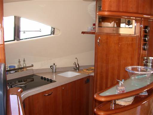 Notas de armamentoAire acondicionado reversible, calefacción con hidraulica del arco del independiente termostatos ambientales con el sistema de control remoto vÃa satélite decodificador de Tv antena Nr. 1 tv LCD en salón desalinizador Nauta C400 120 lt/h de hielo lavadora secadora Bimini top en el anclaje de fly bridge w. cadena incluso relativa urdimbres y defensas con fender pulido exteriores cojines completan Lifeline como nuevos cojines para tomar el sol y cómodos espacios para tomar el sol y numerosos armarios de buscarla Hull de la categorÃa de número de pasajeros12 Espaciosas y confortables: passavanti plataforma lateral teca elevación popa escalera acero inoxidable baño, caliente y ducha de agua frÃa en la escalera de acceso mosca cabina eléctrica reflector inodoro eléctrico con pasos en popa deformación Tornos de teca 2 luces interiores cuenta con cortinas de cascada de toldo de cierre total de metros para Windows