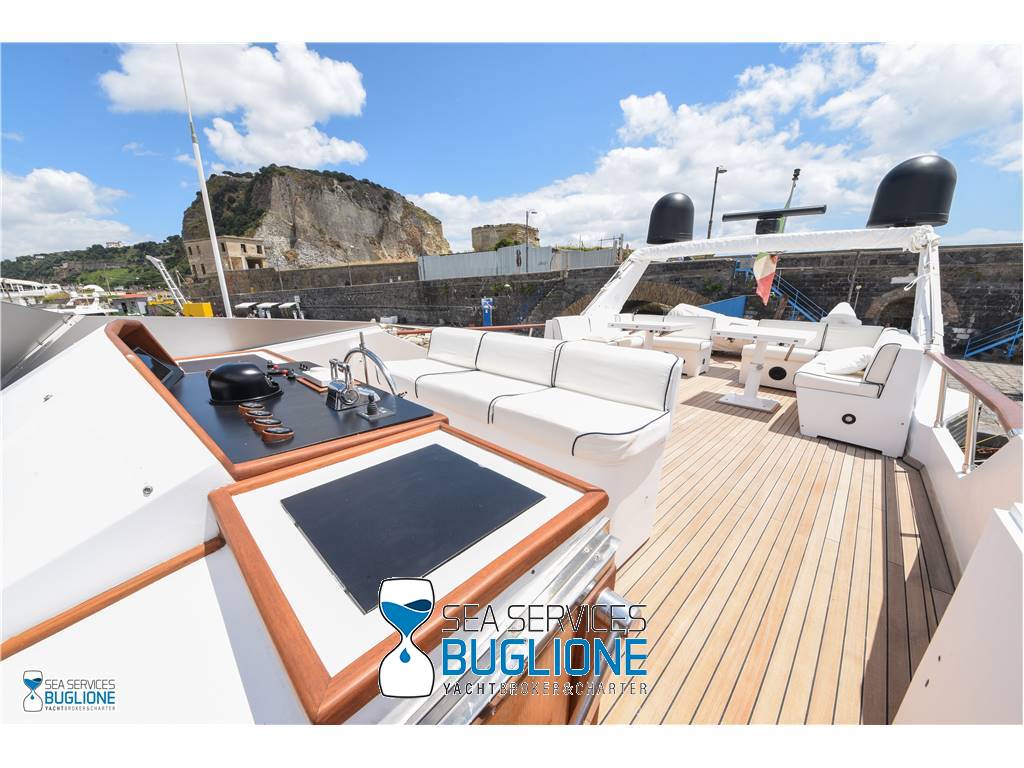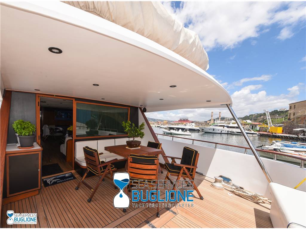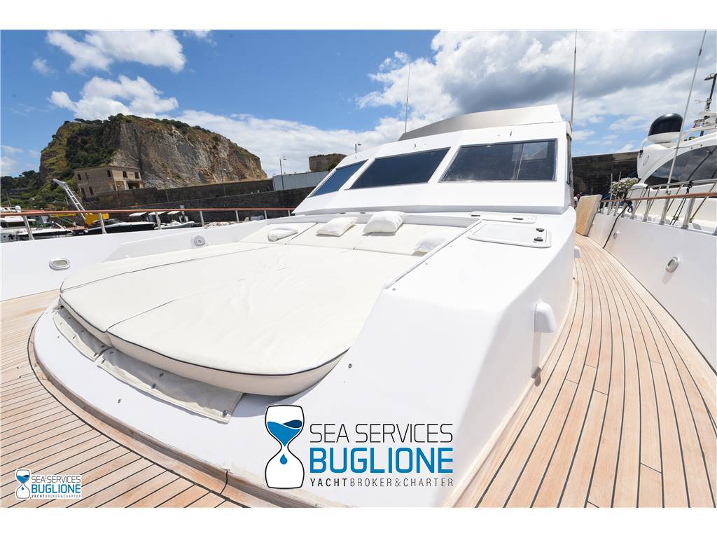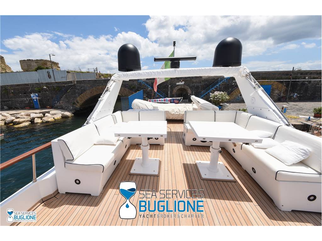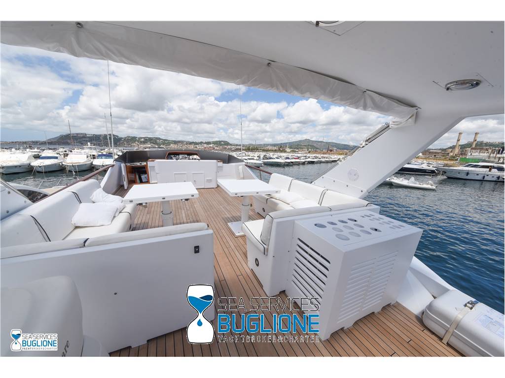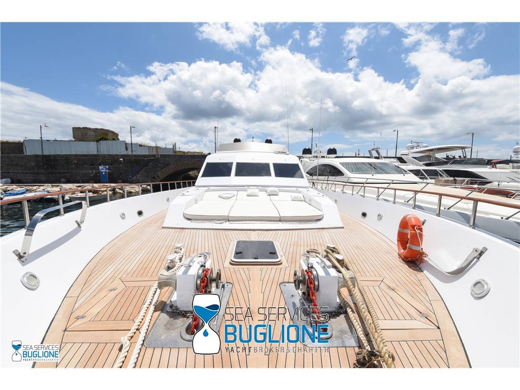 Notas internasCabina armatoriale dotata di letto king size e divano bianco presenti n°4 oblò che garantisco il riciclo dell'aria, inoltre l'impianto dell'aria condizionata è nuovo e sovradimensionato, calpestio in moquette chiara, celino bianco, presenti tanti punti luce di forma circolare. L'ambiente bagno e cabina armadio sono caratterizzati dalla presenza di un lungo corridoio caratterizzato dalla presenza del lavabo e da mobili in vetro contrapposti. Ampio vano doccia dotato di tutti i confort. Cabina studio adiacente alla cabina armatoriale vi è una una cabina con letto singolo dotata di scrittoio e bagno privato. Cabina ospiti con letti in piano calpestio in moquette chiara celino chiaro, armadio in legno, n°2 oblò. bagno privato. Cabina ospiti con letti in piano, n°2 oblò, armadio in legno, calpestio in moquette e celino chiaro. Notas de la instrumentaciónGpsEcoscandaglio Autopilota Vhf Bussola Radar Notas de armamentoPasserella idraulica2 Generatori da 20kw e 15kw Aria Condizionata Dissalatore 300 l/h Inverter Verricelli di manovra a prua ed a poppa Vetrina dei vini in dinette Elica di prua Impianto videocamere sala macchine e poppa |