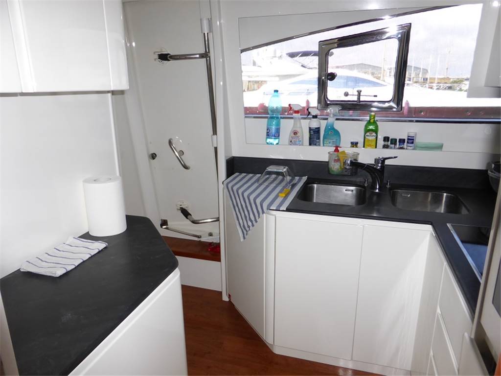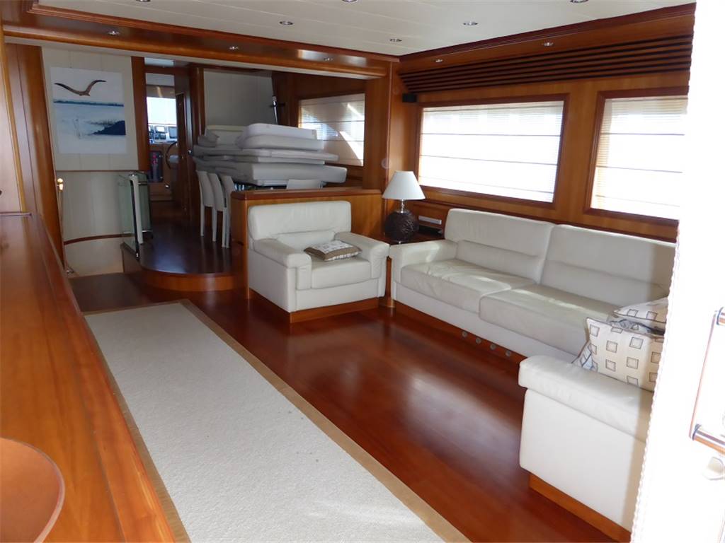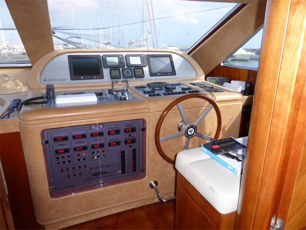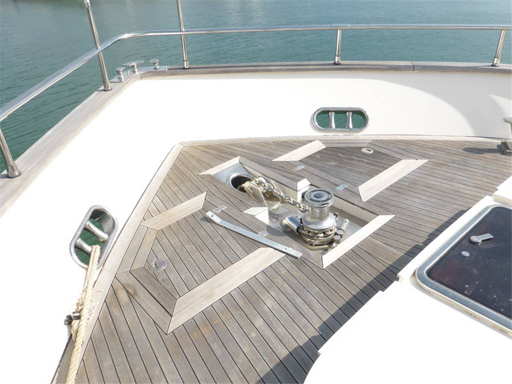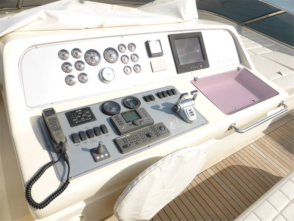 Bow thruster, Radar, GPS Plotter on helm and fly helm station,VHF, depthsounder, LOG,Compass x2, Autopilot, Generator, Air condition , teak deck, teak on swimming platform, TV LCD in salon and all cabins, DVD, dinghy crane on fly, bimini top, hydraulic gangway, SAT TV, electric mooring windlass, anchor with chain, anchorage windlass with remote control, washing machine. |
