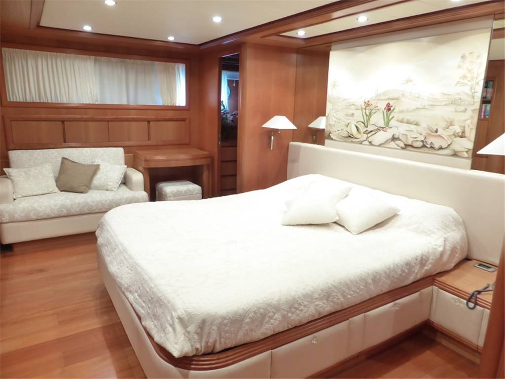 Notas internas4 Cabins and 5 Head compartments + Crew cabin with private head on the bow and addictional one cabin and head on the stern. Imbarcazione Alalunga 78 del 2008 dalle linee classiche ma moderna nell’anima. Il fly ha una zona living con ampia seduta, tavolo e spazioso prendisole. Nel ponte superiore si trovano: salone con un grande divano, zona pranzo e cucina attrezzata. Nel ponte inferiore si hanno 4 cabine, ognuna con bagno interno. La motorizzazione Caterpillar permette ottime performance in piena affidabilita' Cabina armatoriale a centro barca con bagno privato Cabina VIP a prua con bagno privato Cabina ospiti con letti doppi con bagno privato Cabina ospiti singola con bagno privato Cabina equipaggio con due letti singoli con bagno privato Notas de la instrumentaciónRadarGPS Plotter on helm and fly helm station VHF Depthsounder Log N.2 Compasses Autopilot Notas de armamentoUnderwater lightsDesalination unit 200 lt/h 4 mt tender powered with 40 hp Mercury SSB Phone satellite antenna Tv satellite antenna Barbeque on flybridge Cockpit covers Marble tops and floor on heads Tv lcd on cabins and saloon Double Power generator Bow truster Air conditioning . |