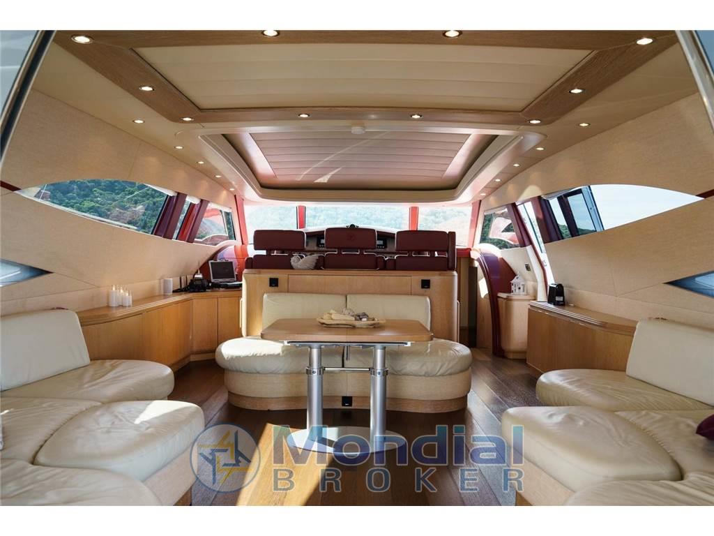 Notas de armamentoAria condizionata - gruppi elettrogeni Kohler 2 x 20 kW - piano cottura elettrico - frigo - freezer - forno - lavastoviglie - TV LCD - antenna TV SAT - cantinetta vini - ice maker - dissalatore - tender jet Williams - SUP - Seabob - elica di prua - elica di poppa - hard top apribile.