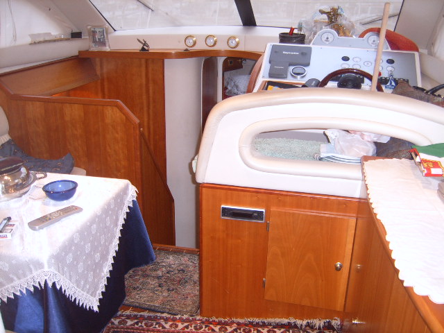 Notas internasNotas de la instrumentaciónsonar de profundidad, vhf, gps, plotter, registroNotas de armamentocojines de tomar el sol, sol toldo, alerones, hidráulica, hidráulica de pasillo, Molinete eléctrico, imp. TV, tablero de mandos y todos cabina teca, caoba Interior rayas |