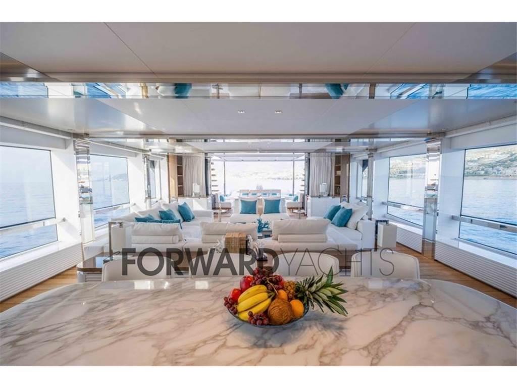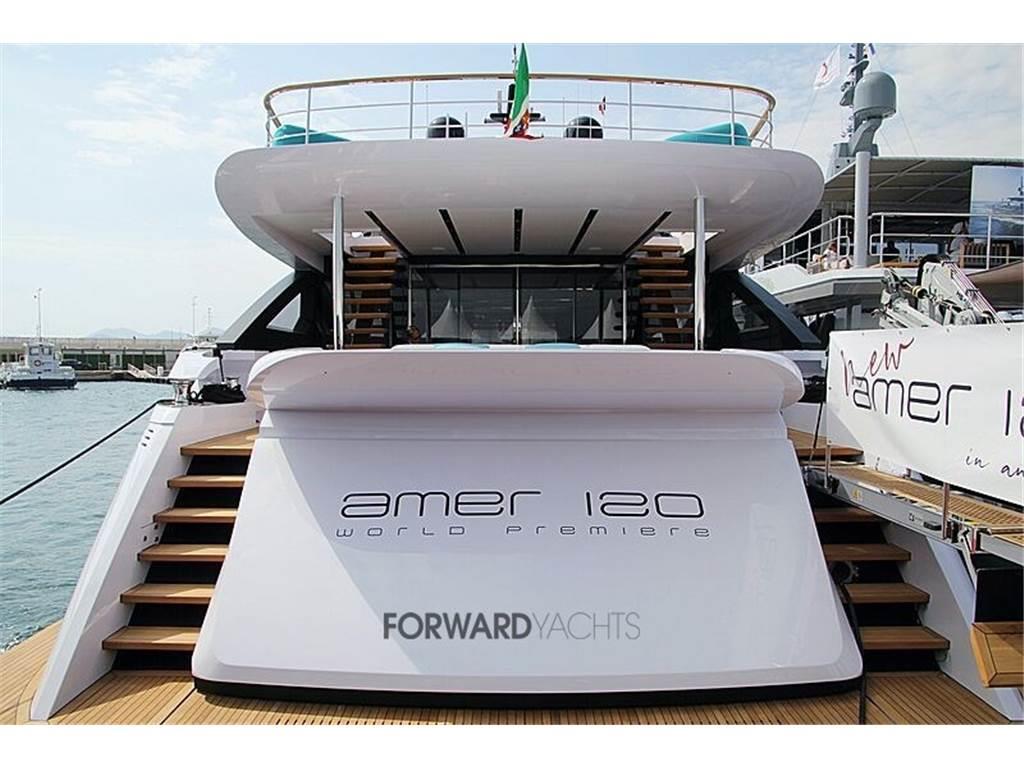 L'AMER 120 è uno yacht a motore con una lunghezza di 35,50 m, una larghezza di 7,4 m e un volume di 230 GT. |