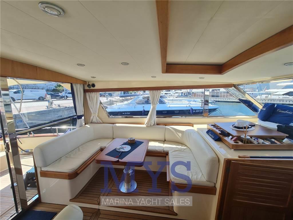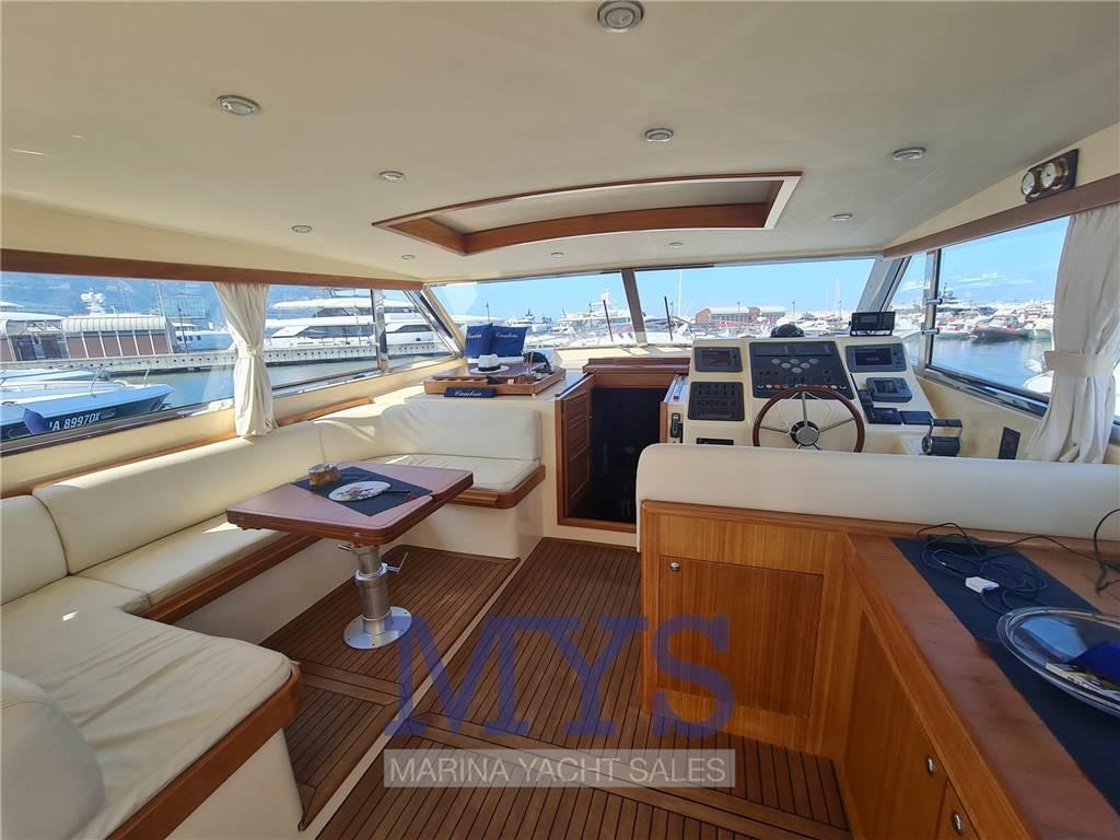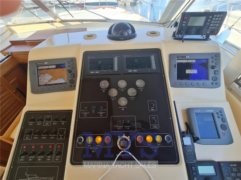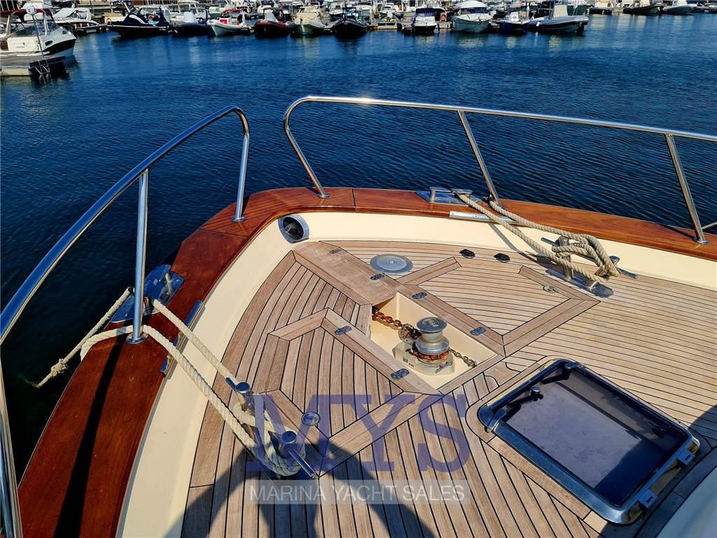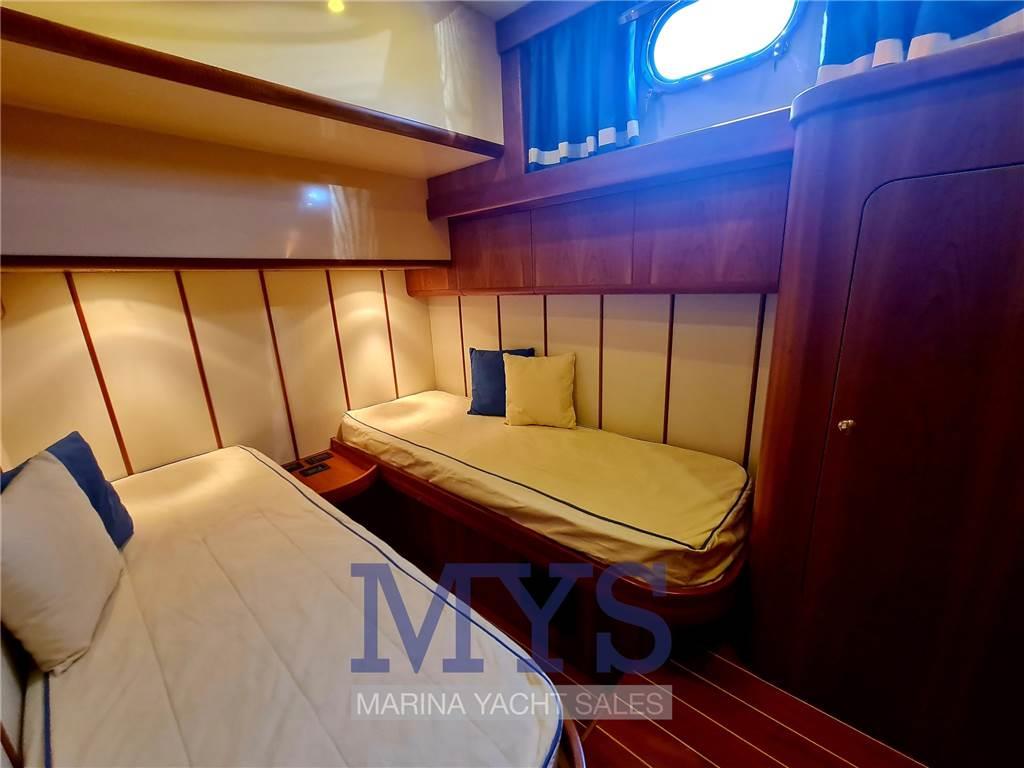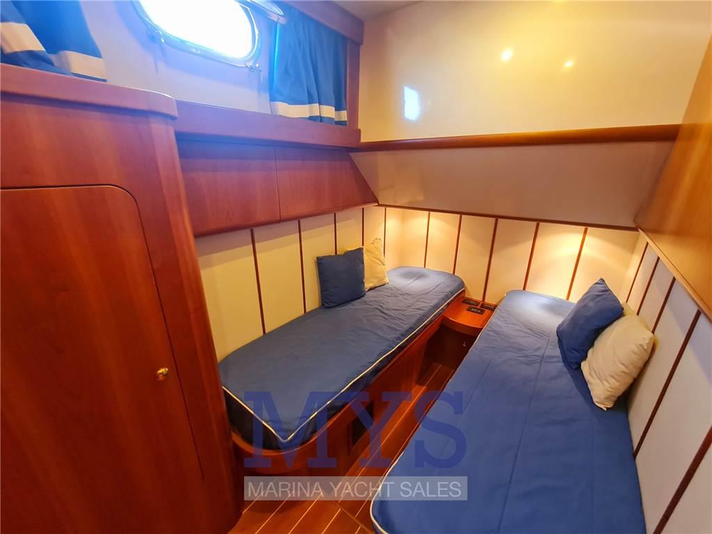 Notas internasCabina armatoriale aprua letto matrimoniale e bagno privato e box doccia Cabina VIP a dx con letto twin con accessori per renderla matrimoniale e bagno comunicante Cabina ospiti sx con letto twin con accessori per renderla matrimoniale Cucina completa di lavello, frigo grande con celletta , fuochi vetro ceramica, macchina del caffè e forno a microonde , lavastoviglie , macchina del ghiaccio Dinette con tavolo da pranzo e televisore Seconda Cucina con 2 fuochi vetroceramica e lavandino in dinette Pavimento interno in legno Notas de la instrumentaciónBussolaGPS Raymarine Ecoscandaglio Pilota automatico Angolo di barra Comando motori elettronicor Elica di prua - bow thruster Flaps idraulici Bennett Indicatori flaps 2 Winch tonneggio di poppa 1 Winch tonneggio a prua Salpancora Elettrico VHF Presa 220V da banchina Caricabatterie Inverter Prese interne 12v Prese interne 220v Luci di cortesia Luci subacquee Altoparlanti Radio AM/FM Stereo Impianto TV TV Aria condizionata con comando in tutte le camere Clima reversibile Autoclave Boiler per l'acqua calda Lavatrice Passerella idraulica Generatore Mase 12kw Notas de armamentoBiminiCuscineria completa Cuscineria di prua Cuscineria Pozzetto Camminamenti laterali in teak Porta ingresso Pozzetto in Teak Tavolo pozzetto con 2 sedie da regista Colorazione Blu Doccia esterna Selle per Tender Piattaforma in teak Scaletta da bagno |
