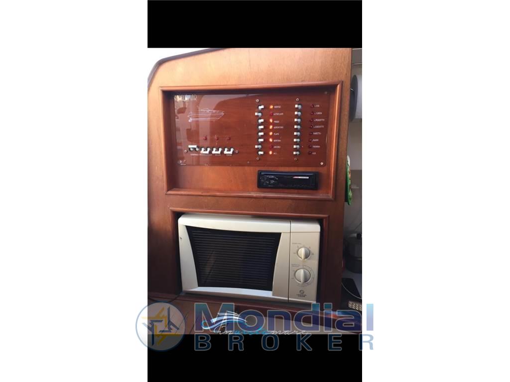 Notas internasNotas de la instrumentaciónCaricabatterie, Ecoscandaglio, Flap idraulici, GPS, Luci di cortesia, Passerella, Radio VHF, Salpa Ancore Elettrico, Tavolo pozzettoNotas de armamentoBoiler, Copripozzetto, Cucina (1 fuoco), Cuscineria di poppa, Cuscineria di prua, Microonde, Radio AM/FM, Telo copriconsolle, Tendalino, TV |
