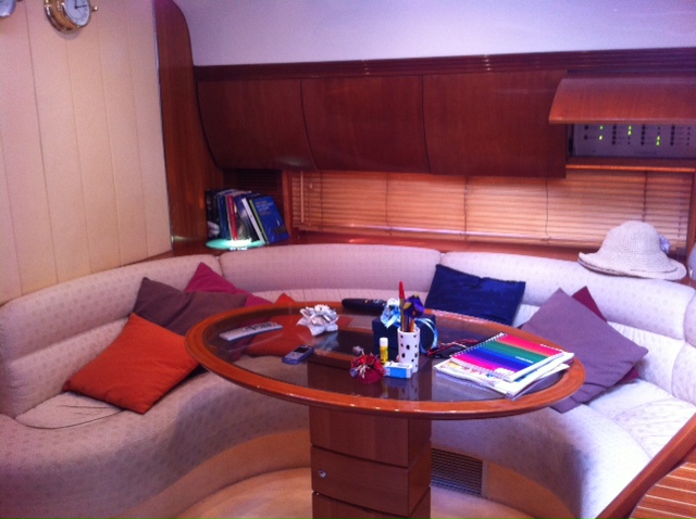 Arreglo interno doble camarote de proa. camarote doble en 2 cabañas, cuartos de baño con WC y ducha, confortable comedor eléctrica, cocina con fregadero, estéreo, LCD, DVD, reproductor de cd, TV con antena, pantallas de mosca de la puerta. Brújula de equipo, piloto automático, radar, proa, sonda, gps, plotter, vhf, registro, indicador del ángulo del timón, controles electrónicos, contaMt. cadena, control de radio para molinete, instrumentación completa del motor. Suministra equipos completos, estabilizadores de armas, molinete eléctrico, sistema de agua negro y gris, bombas de achique manual, pasillo electro-hidráulico y eléctrico, nevera de cabina automática, teca en la cubierta de la cabina, teca, escalera de baño, tomar el sol cojines en la popa y proa, copristrumenti, campana, recuperación de dispositivo sensible. |
