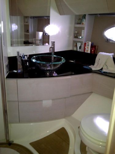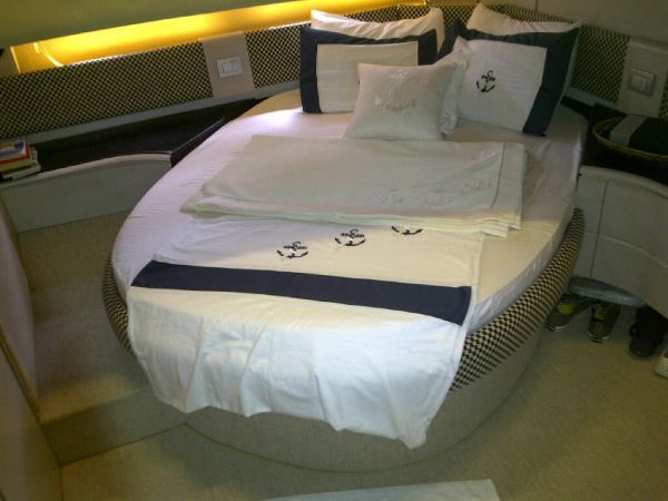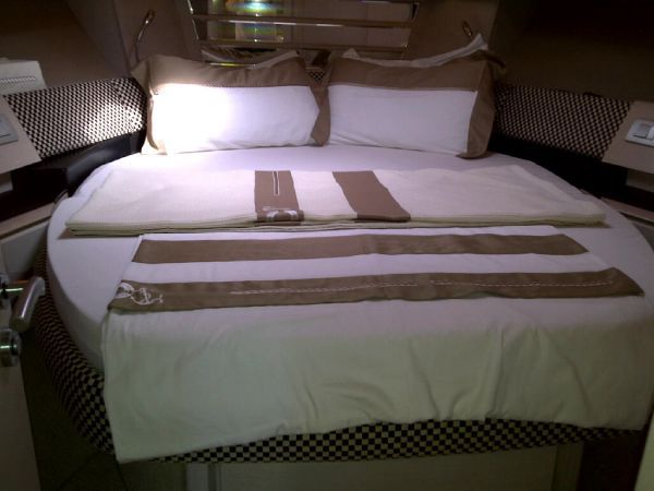 Notas internas3 3 Cabañas doble camarote baños con SUITE privada de cabina VIP doble proa cabina de invitados con baño piso camas para huéspedes cocina completa con ENCIMERA de VITROCERÃMICA y nevera + gran comedor de horno de acero con cuero SOFA mesa claro cristal VOLARON roble interiores