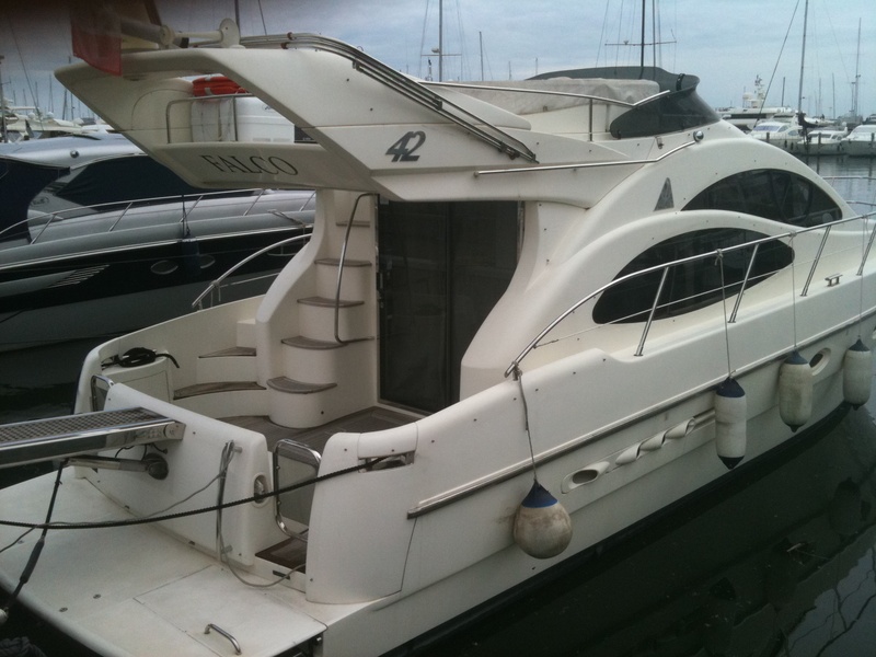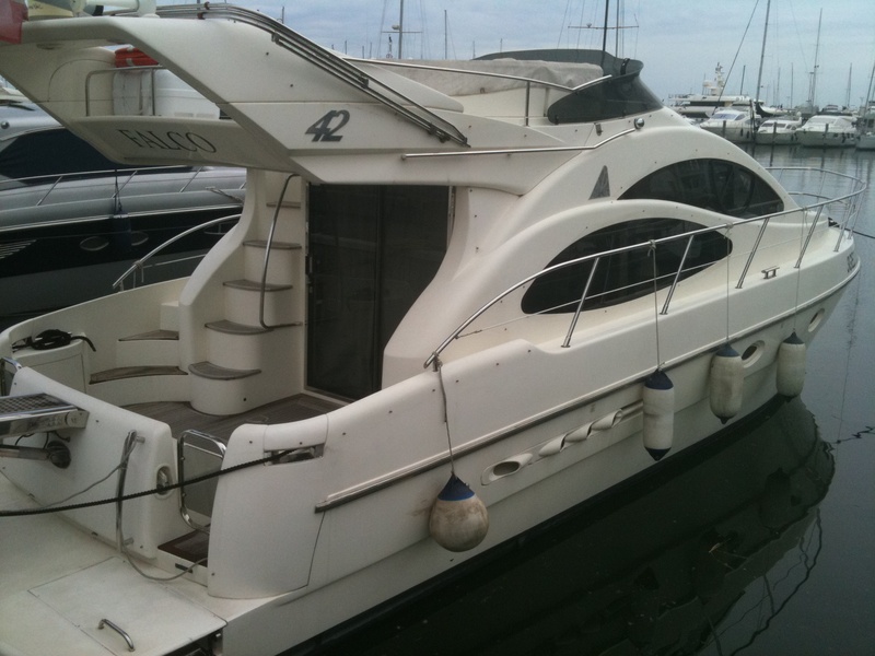 Notas internasAdelante camarote con baño con doble baño cabina VIP dÃa Notas de la instrumentaciónECO GPS PILOTO AUTOMÃTICO TRIM FICHA BARRA ESTADO IDTAULICI LCD TV ESTÉREO ELECTRÓNICO ESPOSAS MOLINETE ELÉCTRICONotas de armamentoTEK TEK SPIAGETTA cabina aire acondicionado CÃLIDO frÃo TOLDO BIMINI TOP es completamente cerrado hidráulico generador interno pasarela FRIGO FRIGO volar nuevamente y direccional Faro cadena seguridad sobre |