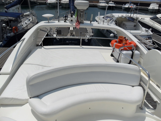 Notas internasNotas de la instrumentaciónGPS, radar, piloto automático, ECHO todo lo repitió dos veces en la mosca, vhf, tridata, elica di prua, generador, aire acondicionado, tv en salón y en todas las habitaciones, dvd, decodificador de SKY, con indicador de alerones, idraulica passerella, Molinete eléctrico, radio con cd, calderaNotas de armamentoBañera teca, bimini top placetta y sobre la marcha, amortiguadores al aire libre nuevos completos nunca usado, licitación con motor fuera de borda con gafas, cubierta de descanso |