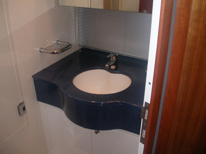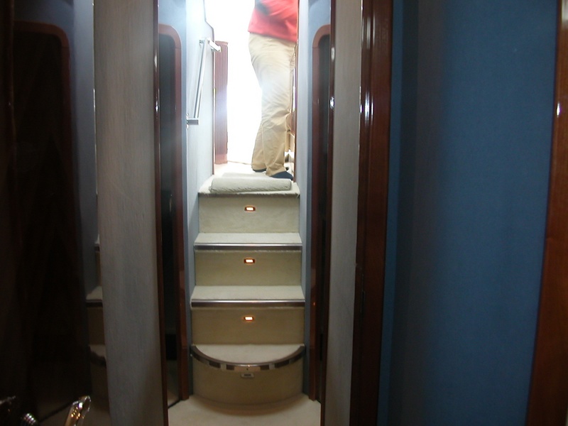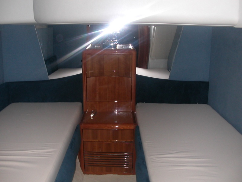 Notas internas3 Cabañas, cabina de proa con cama doble o doble cabinas dobles,.2 n. 3 baños con ducha, WC y receptor, cocina equipada con vitrocerámica, frigorÃfico de 190 lt, microondas combinado, gran salón con sofás, comedor transformable en cama. La cabina de tripulación no equipados, además de 2 tanques adicionales de combustible de 300 lt.