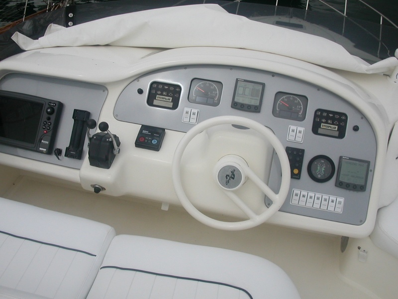 Notas de la instrumentaciónVHF Simrad GPS Plotter con repetidoras en mosca Autopilot Autohelm 6000 piloto automático ST repetidor en flybridge indicación indicador Fishfinder solapas inversores 24 V a 12 V mandos motores X WC Sincronizador Microcommander eléctrico rescatar balsa Zodiac malacate todavÃa 12 asientos 20 kg 75 mt Bruce de la cadena del ancla, arco y cabina cojines volar Darkening manhole deslizamiento marinero de cabina de baño teca de vitrocerámica hornillas microondas teca teca
