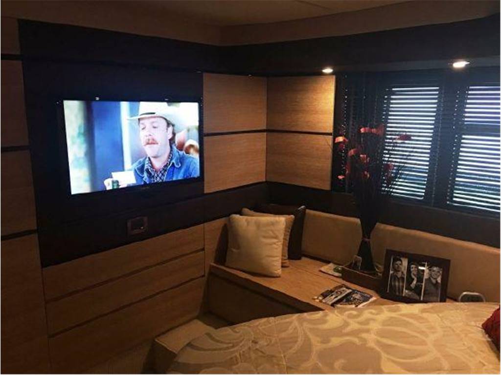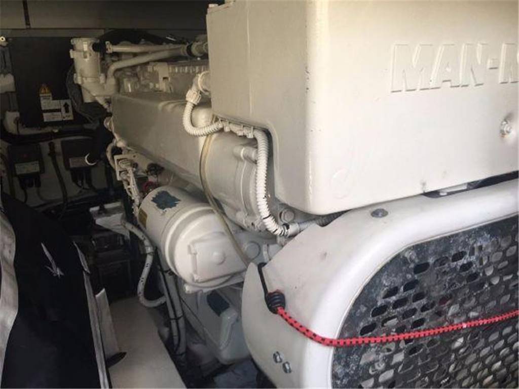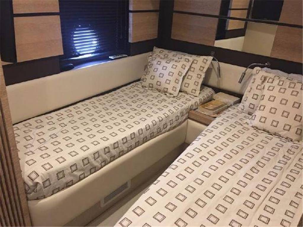 Americanization •Electrical system 220/110 V- 60 Hz 220/110 V -50 A shore power inlet 220V/110V -60Hz generator 20kW •Tropical A/C Cruisar 72000 •BTU + 5000 BTU in crew cabin with SMX controls (Webasto system on 38,43,40S and 43S) •Single Racor fuel filters for main engines •Double Racor fuel filters for generators •VHF with US channels (with repeater on flybridge, except 43S and 62S) •TV/phone dockside connections with US fitting •Shore water connection 110V electric range •Side boarding gates •US-version emergency panel •Electric search light forward on windshield •TV/VCR predisposition with outlets in salon and master cabin •"HIN" plate •FM-200 SEAFIRE fire extinguisher system •Dimmer lights in salon and master cabin •Dimmer lights in VIP cabin •Fog bell •GFCI on each outlet •REVERSE POLARITY gauge on the electrical panel •Internal outlet US type •110V water heater Shore power cables 50A galvanic insulator •110V electric line to cabins •"Diesel" in lieu of "Fuel" on fueling cap Upgrades •Double Racor Filters •Salon Pouf •Coach Roof Cushions •Mosquito Net for Portholes •Joystick Control •Xtena for Engines and Thrusters •Glendenning Cable Master •Teak Side Decks •Teak Flybridge Floor •Washer / Dryer •Wooden floor in Salon •Refrigerator in Aft Bench-Cockpit •Icemaker on Fly •Raymarine E Package Cockpit Chair •Hi-Lo System for 32 LCD •Convertible Sofa / Bed in Salon •Sunbathing Cushions on Aft Flybridge •Crew Cabin •Seakeeper Stabilizer •Hydraulic Platform DECOR UPGRADES: •Wood Floor Dinette, Helm, Galley •Fwd Sunpad Covers •Aft Bench Seat Covers •2 Table Covers •A/V Package •Coast Guard Kit •Stern Thruster •Custom BiminiTop •Custom Captain's Chair •Gangway |