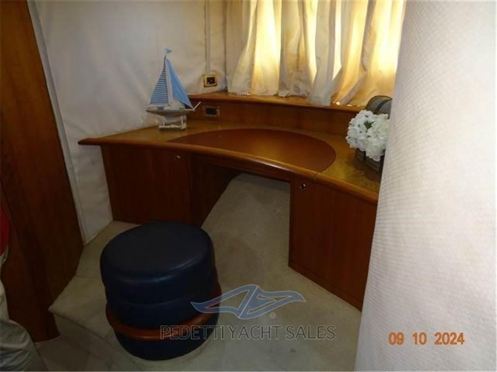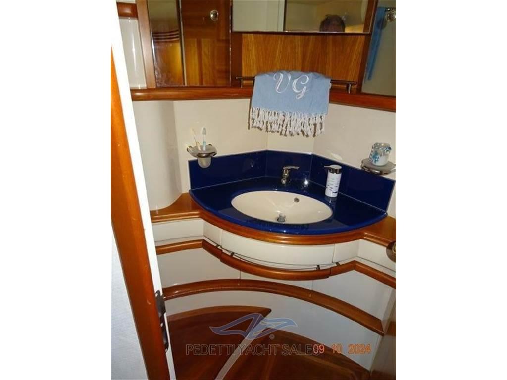 Notas de armamentoAltoparlanti, Aria condizionata, Barometro, Bimini, Binocolo, Boetta fumogena, Boiler, Carte nautiche, Cassaforte, Cassetta di pronto soccorso, Cinture di salvataggio, Cucina, Cuscineria completa, Cuscineria di poppa, Cuscineria di prua, Cuscineria fly, Dissalatore, Dotazioni di sicurezza oltre 50 miglia, E.P.I.R.B., Fornello, Forno, Frigorifero esterno, Frigorifero interno, Fuochi a mano a luce rossa, Giubbetti di salvataggio, Impianto acque nere, Impianto TV, Inverter, Oscuranti, Pavimento interno in legno, Piastra elettrica, Prese interne 12v, Prese interne 220v, Radio AM/FM, Razzi a paracadute a luce rossa, Riflettore Radar, Riscaldamento, Salvagente anulare con cima munita di boetta luminosa, Serbatoio Acque Nere, Stereo, Strumenti da carteggio, Teli chiusura T-Top, Teli copri finestra, Telo Copertura Fly, TV, WC marino elettrico, Zattera di salvataggio