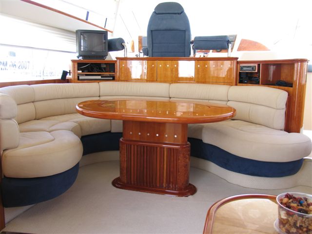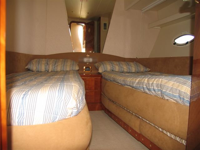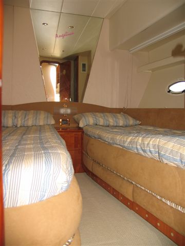 Notas internasÃREA DE DORMIR: ARMADOR RECÃMARAS CABINA CON SERVICIO DEDICADO, VIP CABINA DOBLE PROA CON UN SERVICIO DEDICADO, DERECHO INVITADO CABINA CON DOBLE PISO CON BAÑO. MARINERO CABINA AFT NO EFECTUARON CON ACCESO DESDE EL COCKPIT, CEREZA INTERIOR ESENCIAS DE MUEBLES, TAPICERÃA DEL SOFà DE CUERO NUBUCK. Notas de la instrumentaciónNR. 2 GPS PLOTTER, RADAR, piloto automático, palancas de GAS inversores electrónicos, profundidad sounder, TRIDATANotas de armamentoCOMPLETA de aire acondicionado-generador de 15 KW-teca teca hidráulico de acero inoxidable-AFT pasillo-teca-HOB cerámica HOB-BOSE SURROUND DOLBY en SHARP LCD TV-SALON SALON-GPS NAVIGATOR 11 COLOR LCD IN-DASH-refrigerador sobre posibilidad de volar a configurar el marinero cabina popa-barco en óptimas condiciones de uso- |