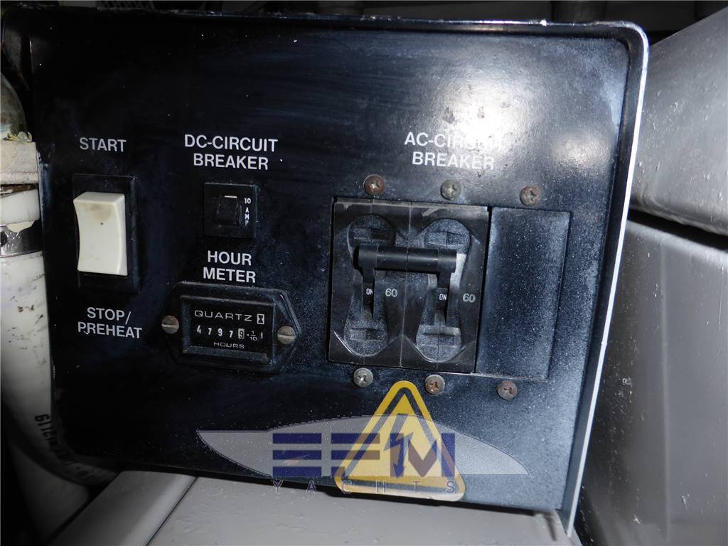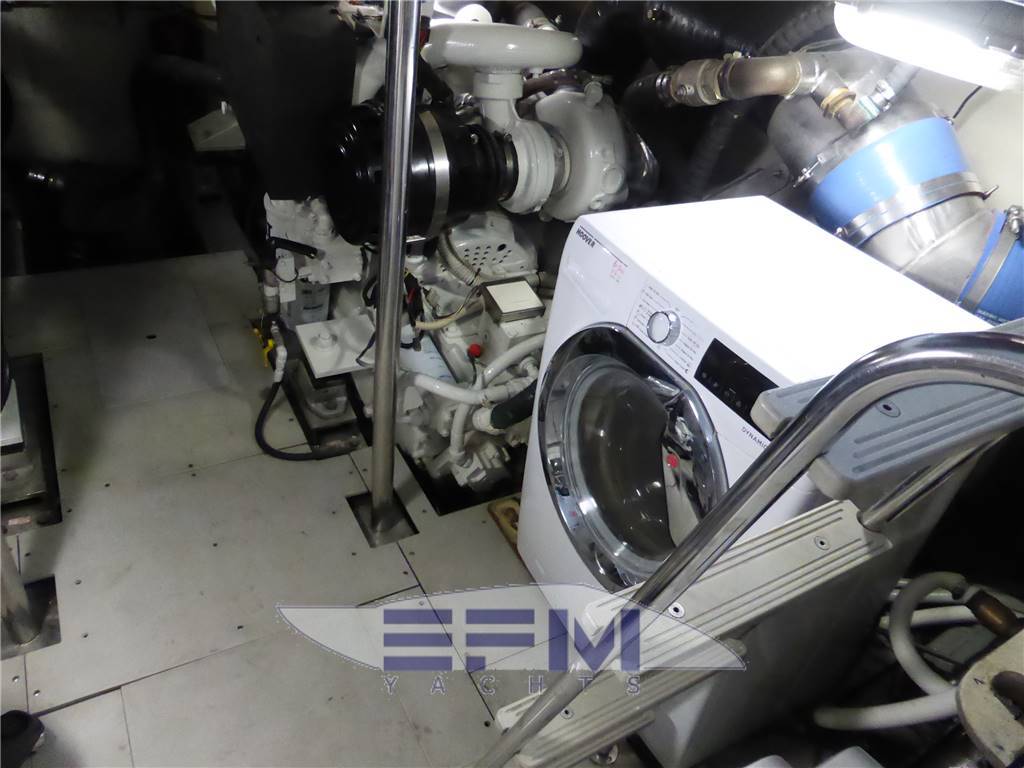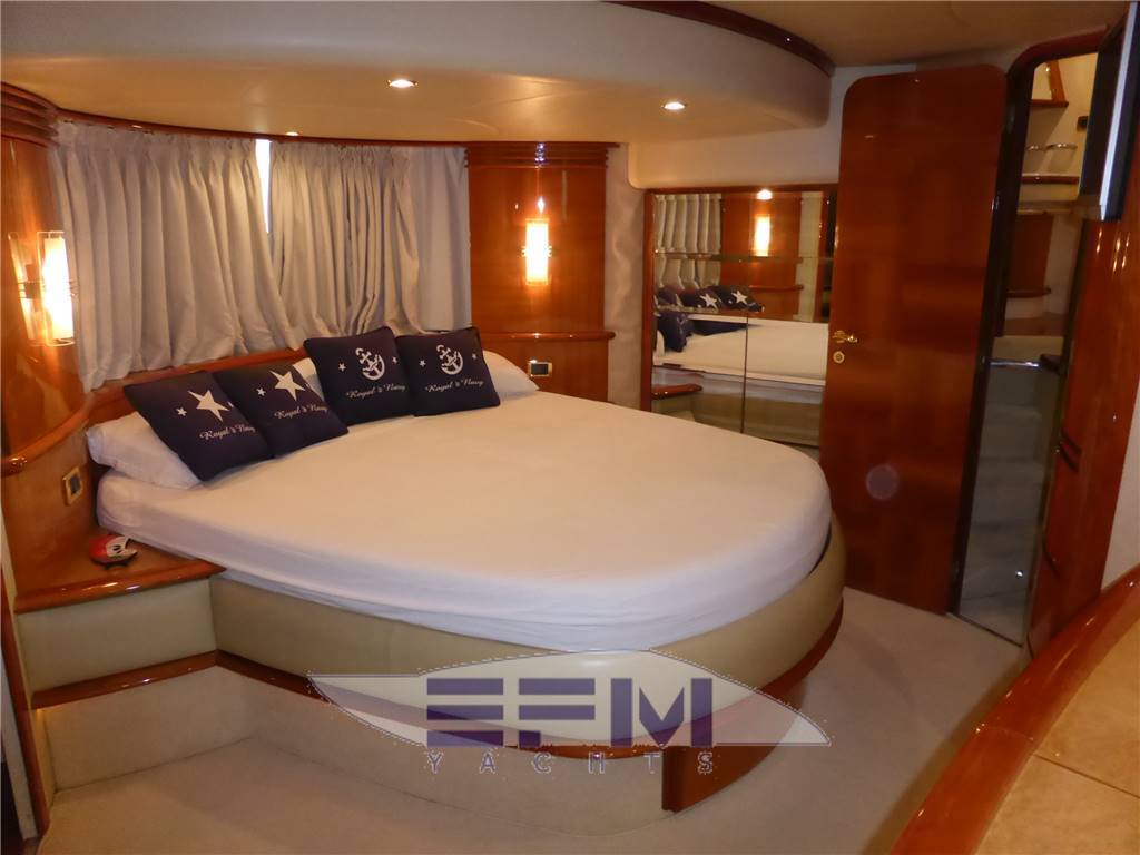 Notas internascabina Armatoriale con grande letto matrimoniale con inserti in mogano , divano 2 posti , cabina armadio spogliatoio, colonna a parete con tv lcd 20' radio cd dvd , scrittoio , armadi e relativo bagno privato completo con bidet e locale doccia separato - Al ponte superiore : salone, a dritta, con mobile in ciliegio lucido ,icemaker, storage, TV color con VCR e bar con porta bottiglie in plexiglas, divano in pelle bianca nabuk a C con tavolo da pranzo in radica apribile , stereo. Dinette su secondo livello a dritta verso proravia con doppio divano a C e mobile in ciliegio - Scala esterna in VTR e gradini in teak per accesso al fly - Cabina marinaio con un letto e wc e con entrata dal divano dal pozzetto Posto di pilotaggio interno: seduta guida in pelle regolabile, desk computer, timoneria a ruota in acciaio inox e teak con idroguida e regolabile in altezza, comandi vari (verricello, flaps, tergilavavetri, vetri laterali apribili, luci navigazione e ricerca, lavacatena, tromba, estrattori e ventilatori sala macchine. Strumentazione elettronica interfacciata: display multifunzione Raymarine Tridata, radiotelefono VHF, GPS, Plotter cartografico Raymarine doppio anche sul fly , ST ST8002 (autopilota, angolo barra, bussola magnetica, log, eco), pannello sinottico strumentazioni e indicatori motori, telecomandi mono leva elettronici Microcommander, strumentazione VDO, Radar Zona carteggio: in plancia con desk computer, luce e portacarte Zona cucina: con piano cottura in vetroceramica, microonde + grill, piano di lavoro in granito nero con due lavelli e miscelatore, aspiratore, frigo da 220 litri, mobili sotto piano di lavoro e pensili altro mobile per storage servizio completo di posateria, pentole e stoviglie per 8 persone e lavastoviglie. Notas de la instrumentaciónStrumentazione doppia e completa Raymarine ripetuta anche sul fly : 2 gps plotter cartografico Raymarine a colori - 2 ecoscandaglio - antenna radar Raymarine - 2 vhf Raymarine - 2 pilota automaticoRaymarine st 600 - doppia antenna Intel Sat x tv + decoder - impianto radio stereo cd - dvd con dolby surround - Tv lcd in salone + tv lcd 19 e 26 in ogni cabina - Elica di manovra a prua e a poppa - Comando flaps - Manette elettroniche - strumentazione digitale e analogica motori - computer di bordo - quadro elettronico per utenze 24 v e 230 v - Comando elettronico climatizzatore tropicalizzato a doppia pompa di calore. Notas de armamentoPasserella idraulica maggiorata con inserti in teak , elica di prua , lavastoviglie , frigo 220 LT, icemaker -Cosparsat doppia frequenza, cassaforte, luci di poppa fly, dotazione di sicurezza completa per 12 persone , set completo di stoviglie e ricambi biancheria per tutte le cabine - Faro poppa x ormeggio - 2 Winches tonneggio - Pozzetto in teak - Luci cortesia - Doppia antenna Satellitare per TV con decoder digitale terrestre dvd - Generatore - Climatizzatore automatico a doppia pompa di calore e con comando separato in ogni ambiente - icemaker - cucina completa con piastra elettrica a 4 fuochi, microonde, frigorifero - 1 frigobar nel pozzetto esterno ed 1 frigobar nel fly - Passerella idraulica maggiorata - Cabina equipaggio allestita - Vericello elettrico con telecomando , ancora Bruce con 100 mt. catena maggiorata - Tv Lcd in ogni cabina e salone - casse acque nere - copripozzetto e finestrature complete - cuscinerie complete - dotazioni di sicurezza complete - luci di cortesia . Gruetta fly . Tender + fb Honda. |