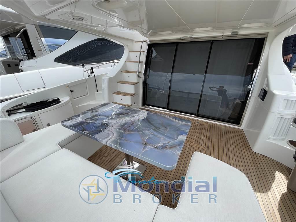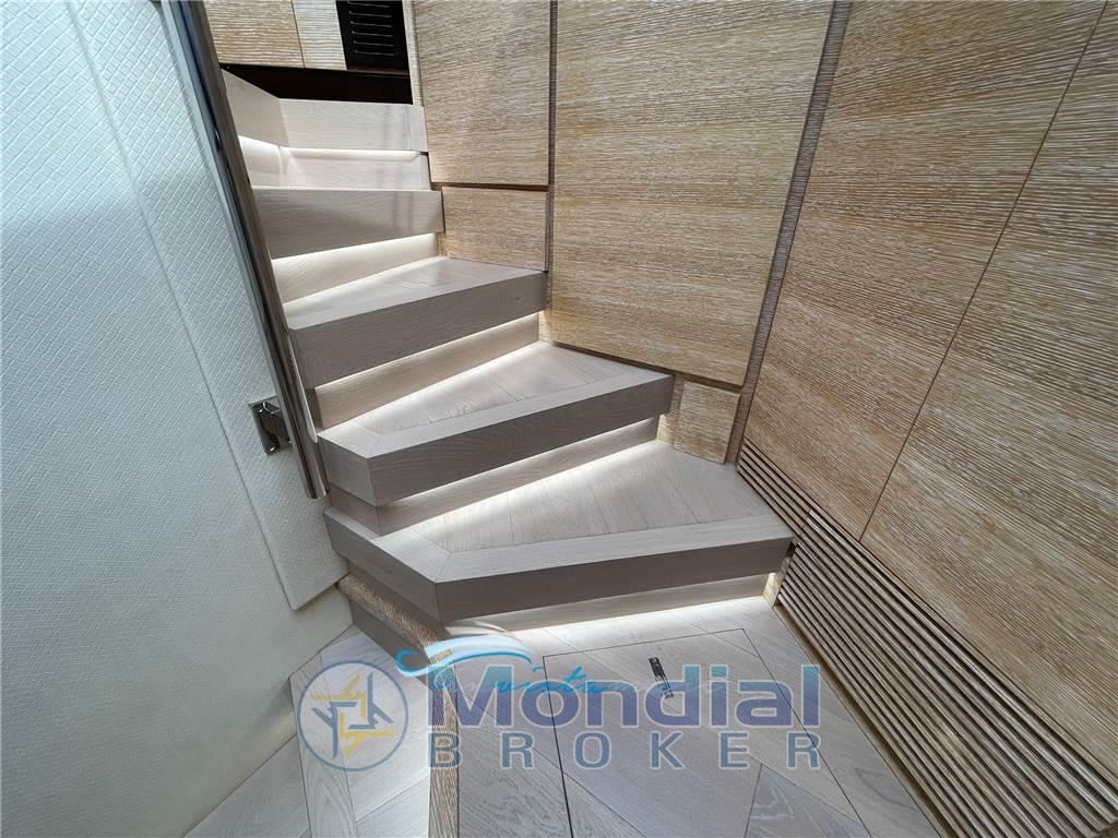 Notas de armamentoAntifurto, Aria condizionata, BBQ/ Grill, Bimini (Con tettino rigido), Boiler, Cassaforte, Clima reversibile, Copripozzetto, Cucina (Induzione), Cuscineria completa, Cuscineria di poppa, Cuscineria di prua, Cuscineria fly, Cuscineria Pozzetto, Dissalatore (250 litri ora), Dotazioni di sicurezza oltre 50 miglia, E.P.I.R.B., Fornello, Frigorifero esterno, 3 Frigorifero interno, Ghiacciaia, Impianto acque nere, Impianto TV, Inverter, Lavasciuga, Microonde, Oscuranti, Pavimento interno in legno, Prese interne 12v, Prese interne 220v, Radio AM/FM, Serbatoio Acque Nere, 6 Telecamera, Teli copri finestra, Telo Copertura Fly, Telo copriconsolle, 4 TV, WC marino elettrico, Zanzariere, 2 Zattera di salvataggio (8 persone)