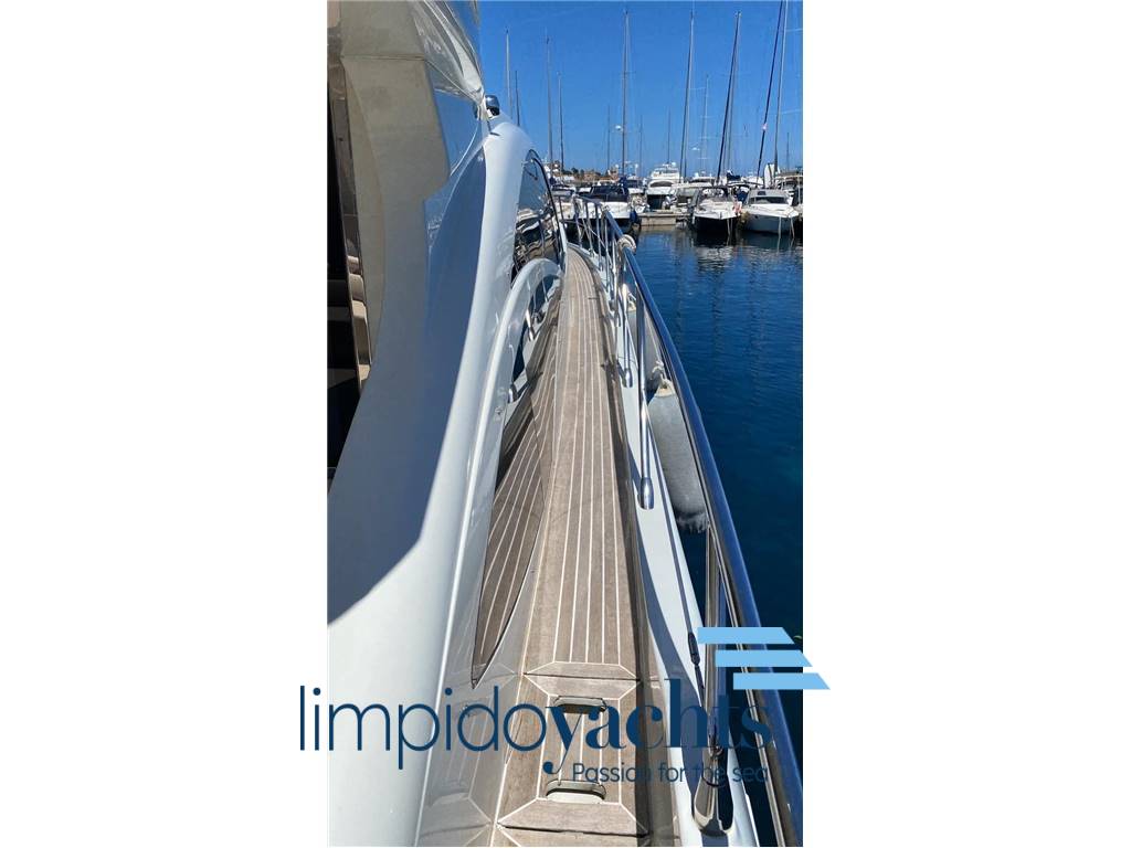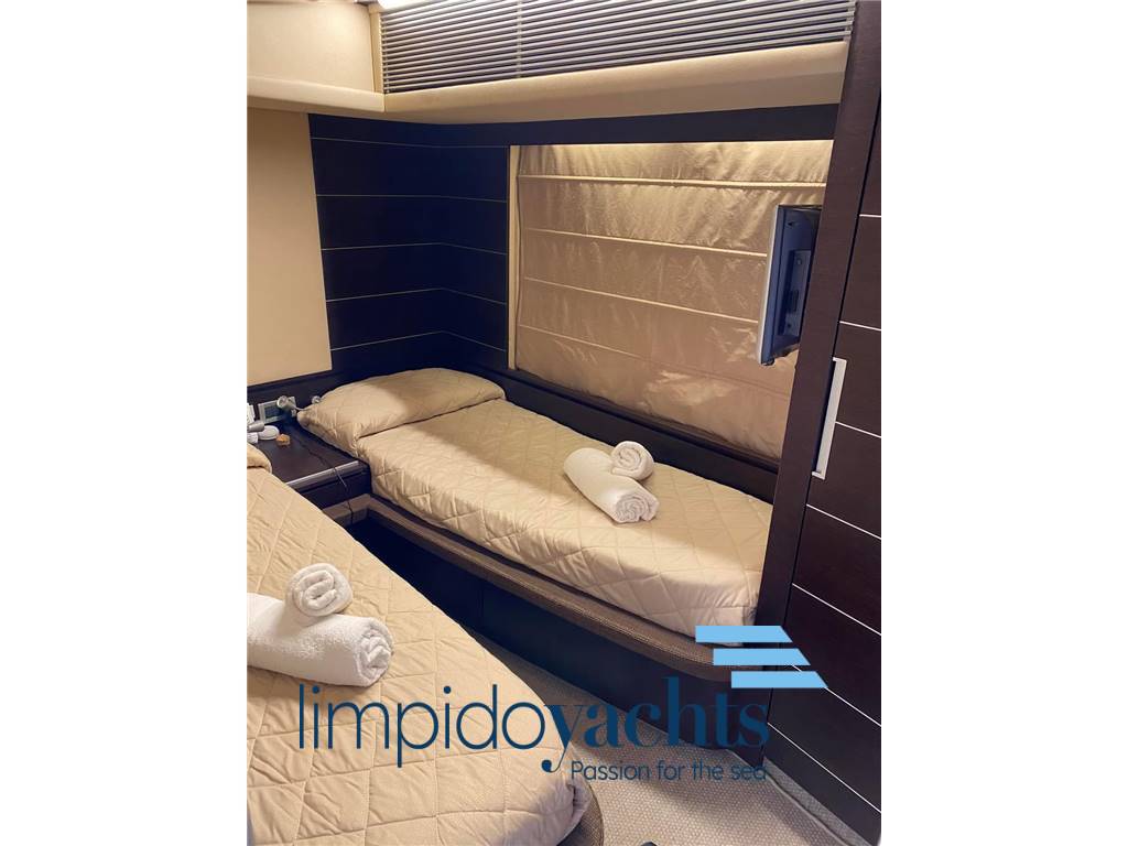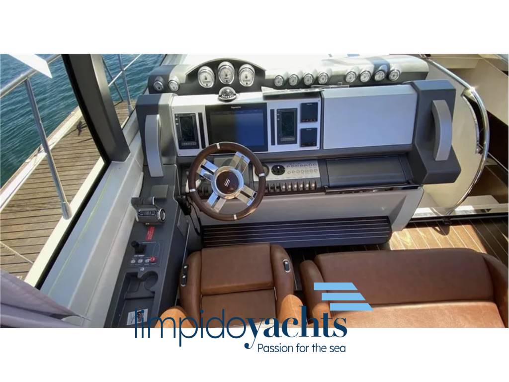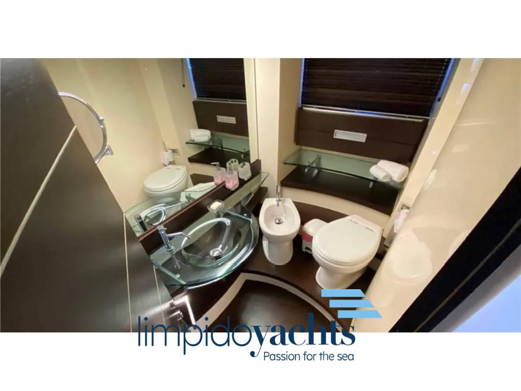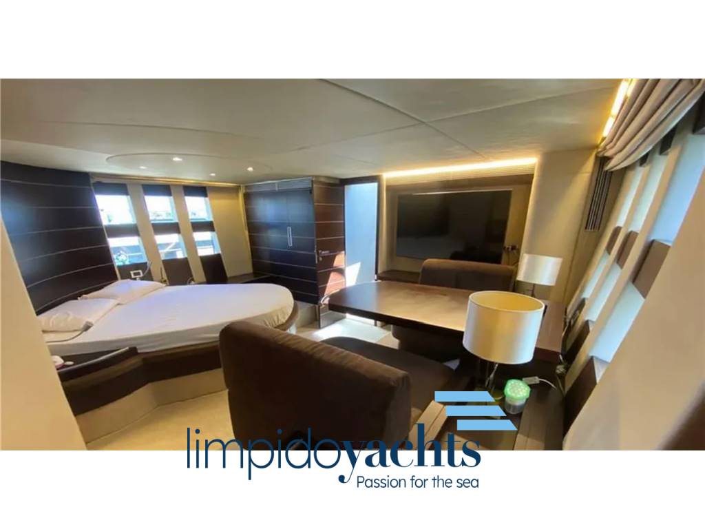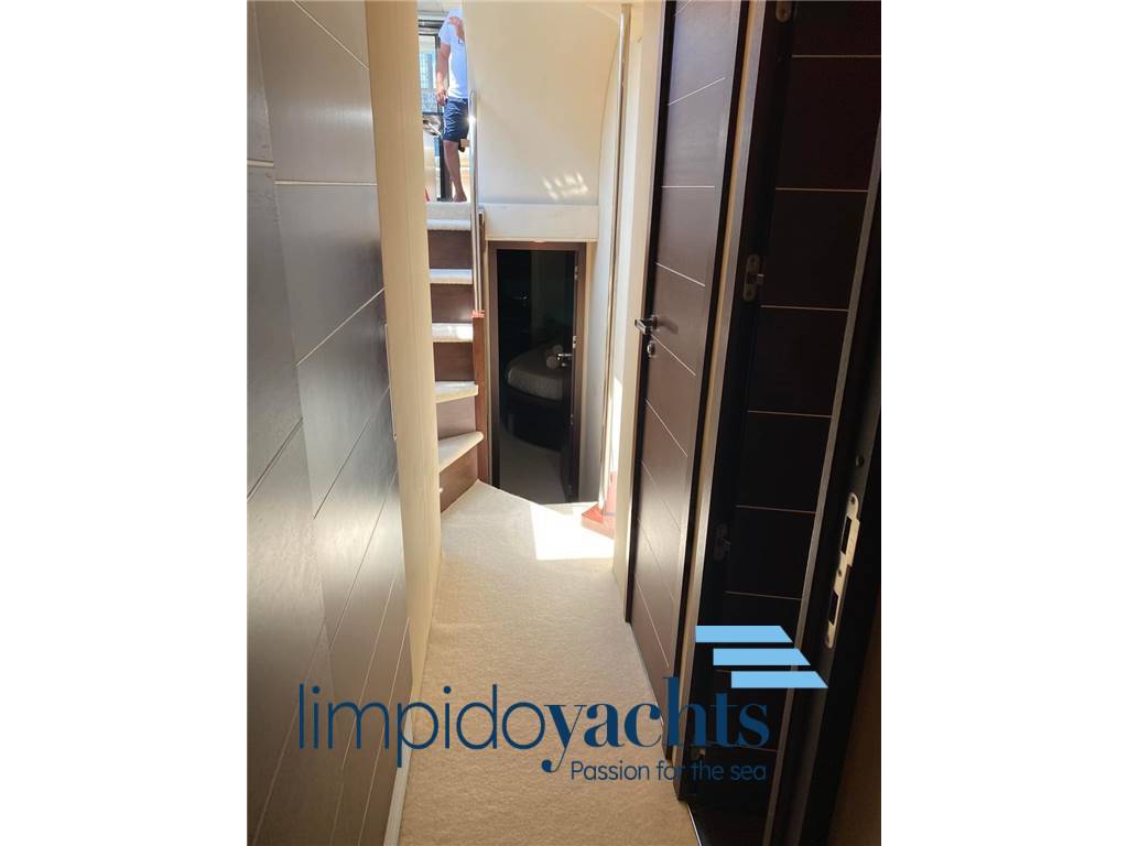 Notas internasBerths 6 + 2 Head compartments 3 + 1 Il suo layout prevede una cabina armatoriale a centro barca, con letto matrimoniale, bagno privato con doccia e ampio guardaroba, una cabina VIP a prua con letto matrimoniale e bagno privato con doccia e una cabina doppia con bagno privato con doccia. L'Azimut 68S dispone di un innovativo salone principale disposto sul ponte principale dello yacht. Ciò libera il ponte inferiore per la zona alloggi. L'AZIMUT 68S ha un tocco decisamente sportivo al timone, grazie ad un sistema di governo reattivo e istintivo e ad uno scafo progettato per le massime prestazioni. Il tetto rigido ripiegabile con meccanismo di apertura a sezione rigida. Arredi minimalisti, seta indiana, acciaio, vetro e pregiato legno wengé, ogni dettaglio è stato pensato per rendere il vostro soggiorno a bordo il più confortevole e privato possibile. INTERNI: Suddivisioni e caratteristiche: il salone, con porta di accesso dal pozzetto in cristallo temperato, ospita sulla sinistra un angolo conversazione, con divano a parete, poltrona e sedute trasformabili in bassi tavolini; una di queste, con porta completamente aperta, trasla verso il pozzetto e serve come poltroncina al tavolo da pranzo esterno; contrapposto, sulla dritta, il tavolo da pranzo in wengé e cristallo nella cui base è ospitato lo schermo TV LCD da 30''; a parete un divano tre posti. Qui la pavimentazione è in legno wengé e moquette e un dettaglio notevole è il tettuccio rigido, già trasparente, apribile con sistema elettrico per aerare il già luminoso living. Da qui, andando verso prua, si scende con scale separate e adiacenti, a sinistra verso l'area notte e a destra in cucina. La suddivisione vede a prua una cabina Vip con letto matrimoniale e bagno privato, dietro e sulla fiancata sinistra una cabina con letti gemelli al cui bagno si ha accesso anche dal corridoio, contrapposto il vano che ospita la lavasciuga biancheria e verso poppa, ma ancora a centro barca, la grande cabina armatoriale con letto diagonale e dinette, molto luminosa grazie alle sei finestre quadrate. Il bagno ha la doccia in vano separato con doppia uscita di acqua e il lavabo, molto elegante, è in cristallo con barra in acciaio inox Posto di pilotaggio: posto sulla sinistra del living, ha un aspetto piuttosto sportivo, con le poltroncine regolabili in pelle moka, il volante in legno e acciaio, gli strumenti analogici con ghiere cromate. La strumentazione comprende oltre a contagiri, tachimetro e log, tutte le pressioni e temperature di motori e invertitori, i livelli di carburante e acqua, allarmi dei vari circuiti, indicatore angolo di barra e ovviamente gli strumenti per la navigazione (bussola, GPS chart-plotter, VHF, radar, tridata, autopilota). Le leve motori sono Cruise Commander elettroniche Zona cucina: con accesso separato, molto asettica e minimalista, ha una piastra vetroceramica a quattro fuochi, doppio lavello ad angolo, microonde-grill, frigo da 270 litri, cappa aspirante, una cambusa sotto la discesa e il tipico mobile Azimut a cassettiera per piatti (Alessi) e stoviglie. Notas de la instrumentaciónStrumentazione Raymarine AXIOM 2022 completa : pilota automatico - gps plotter cartografico a colori 12" - radar 48 nm con schermo 12" - computer di bordo - vhf - stazione barometrica - impianto home theatre e impianto tv e telefono satellitare impianto telecamere a circuito chiuso con visione nel pozzetto e nella sala macchine - elettronica di bordo completa - televisore a LED con impianto sali e scendi in salone - televisore 55" in cabina armatoriale - televisore 32" in cabina vip ed ospiti - stereo/cd in tutte le cabine -Notas de armamentoTeak sui passavanti• Teak sul ponte di prua • Teak in pozzetto e plancetta di poppa • Eliche di prua e di poppa • Joystick di comando motori e eliche di manovra • Passerella idraulica telescopica Opacmare • Generatore Kohler 17,5 Kw • Filtro Racor per generatore • Doppio filtro Racor per motori • Impianto aria condizionata • Flap • Plancetta di poppa idraulica • Scaletta bagno • Garage per tender • Lavastoviglie • Lavatrice • Forno a microonde • Dissalatore Shancher • Frigorifero • Cuscino prendisole di prua • Cuscino prendisole di pozzetto • Cabina marinaio a poppa • Pavimento in legno Wenge in salone • TV LED con impianto Hi-Lo in salone • TV Sharp in cabina VIP • TV LED 55' in cabina armatoriale • Impianto audio Bose in salone • 4 altoparlanti aggiuntivi Alpine in pozzetto • 2 subwoofer Jl Audio in pozzetto • Sistema di navigazione Raymarine AXIOM serie 2022: VHF, chartplotter, radar, autopilota, GPS • Impianto TV satellitare • Mobile bar in pozzetto con barbecue, ice maker, frigorifero • Bidet in bagno cabina armatoriale • Scafo verniciato in grigio • Tavolo pozzetto • 4 sedie pozzetto • Faro elettrico • 2 luci subacquee sotto la piattaforma da bagno • Dimmer per luce in salone e pozzetto • Presa acqua da banchina |