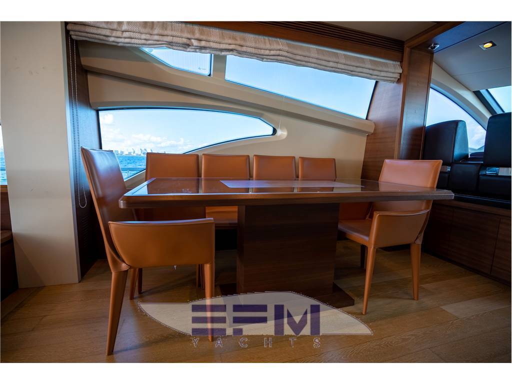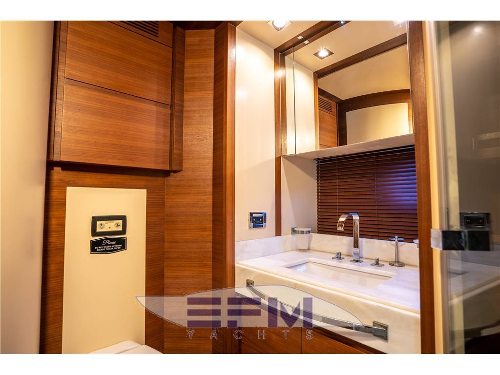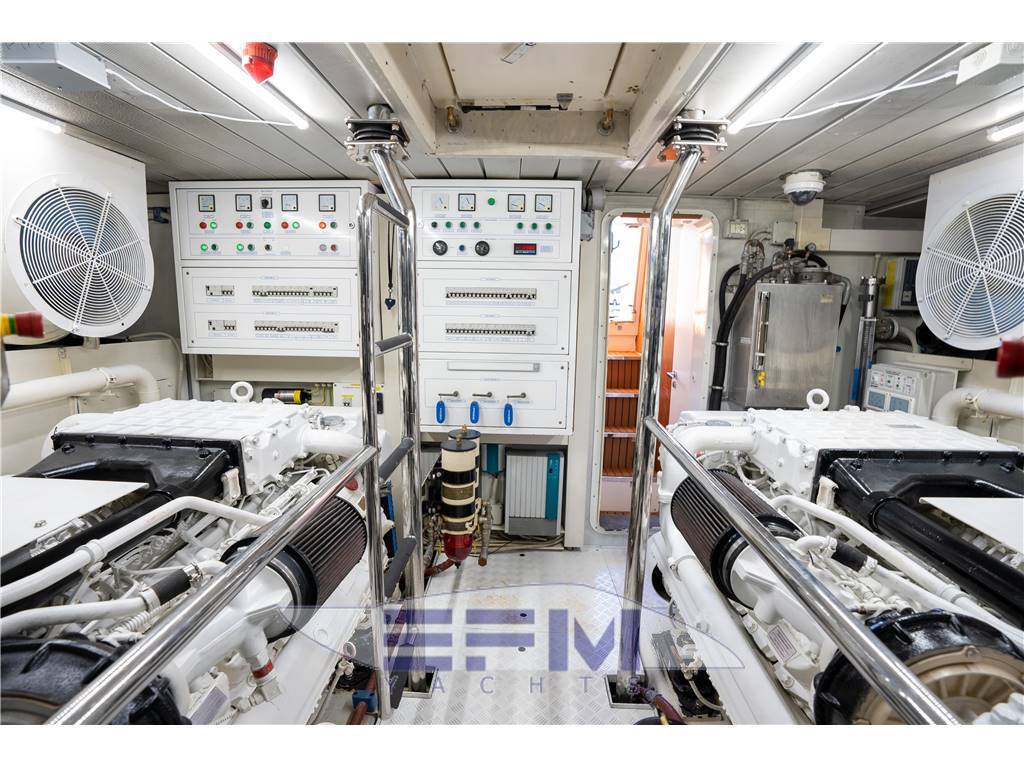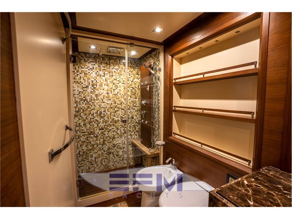 Notas internasNumber of bathrooms: 4 Berths 9 guests + 2 crew Head compartments 4 + 1 crew Material VTR/GRP Interior Designer Stefano Righini Exterior styling & concept Carlo Galeazzi Notas de la instrumentación• 2 Raymarine GPS color touch screen chartplotters at Flybridge• 2 Raymarine GPS color touch screen chartplotters at Lower Helm • Raymarine 72NM Radar • Raymarine 240 VHF handset radios w/console mounted speakers • Whitestar magnetic compass at lower helm • Zenith magnetic compass at Flybridge • Tracvision HD Satellite TV • 2 Kohler 30KW Diesel Generators Notas de armamento-ANNUAL YARD PERIOD COMPLETED 5/2023- SAND, BOTTOM PAINT, PROP SPEED, ZINCS- HULL INSPECTION-ENGINE AND GENERATOR SERVICES COMPLETED 1/2023 Options include the following: • Mitsubishi GOT1000 Electro-hydraulic Fin Stablizers • Hydraulic Bow and Stern Thrusters with PTO on each motor • Flybridge Hard top w/ retractable sun roof • Hydraulic Swim Platform • Separate Miele Washer and Dryer • Underwater Lighting • Flybridge Chaise • Teak Cockpit, Side Decks and Flybridge • Teak laid hydraulic swim platform, capacity 500 kg • Teak laid cockpit • Teak laid staircase leading to flybridge • Teak laid flybridge • Teak laid walkaround • Opacmare hydraulic gangway • Opacmare hydraulic tender crane with 450 kg lifting capacity • Transom Door leading to crew cabin and engines room • Two side gates • Wetbar with Miele fridge / freezer drawers, sink and BBQ on flybridge • Galley with marble counter top opened on the dinning area equipped with GE american fridge / freezer combo, Miele oven, Miele ceramic cooker, Miele hob, Miele dishwasher, Miele microwave oven • Port pop-up Sharp LED 46" TV with Bose home theater surround system • Samsung 32" LED TV in the VIP cabin • Miele Washing Machine / Dryer located in lower deck corridor |
