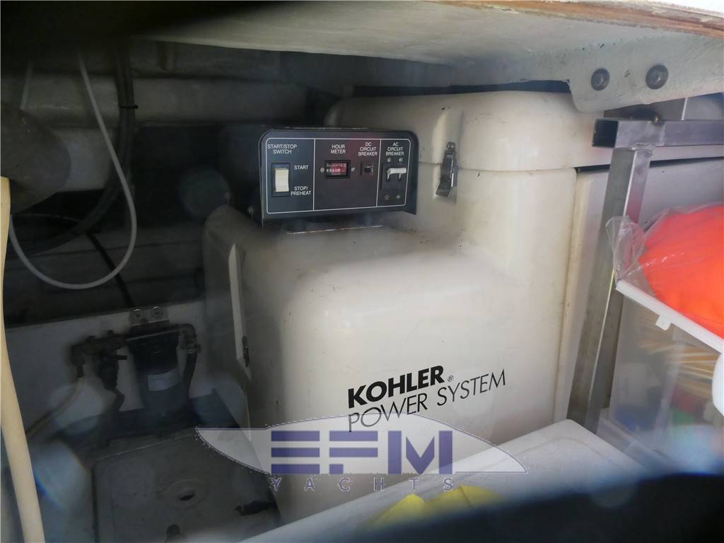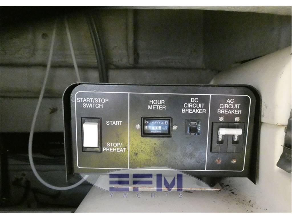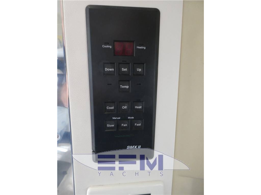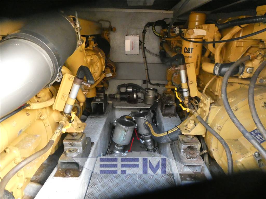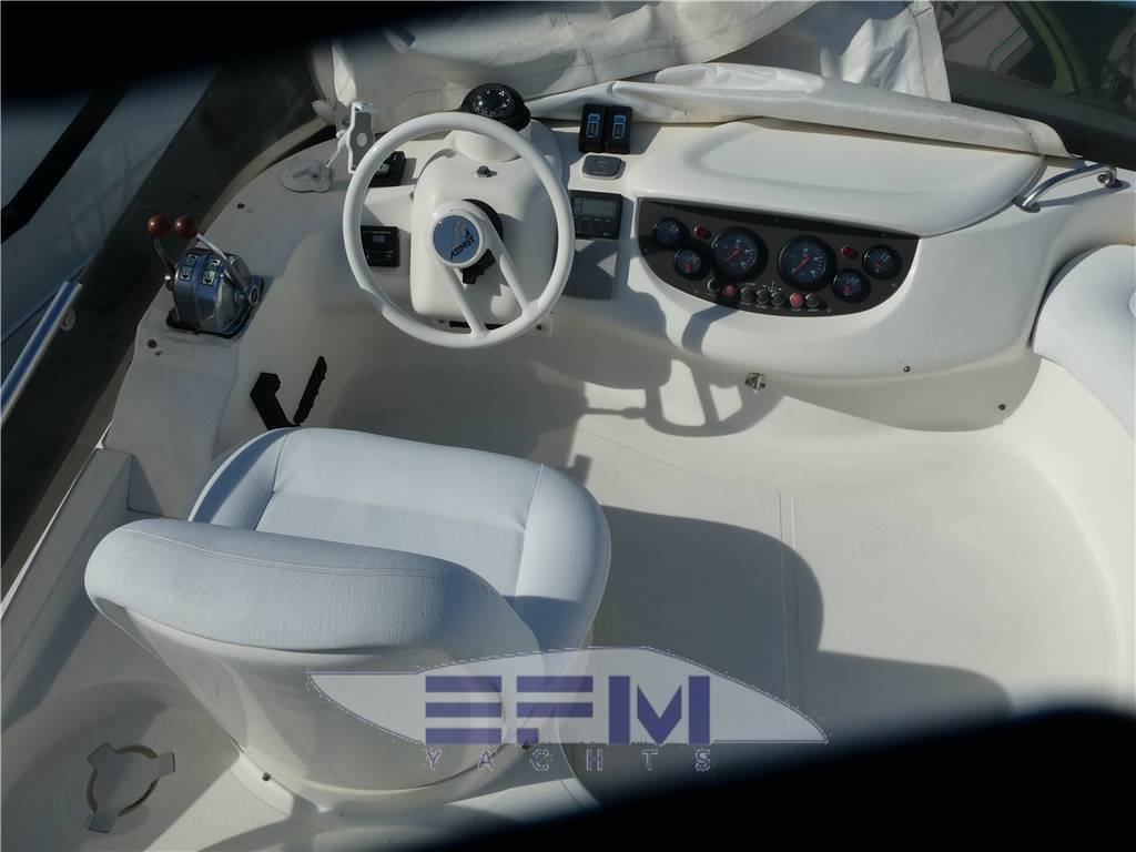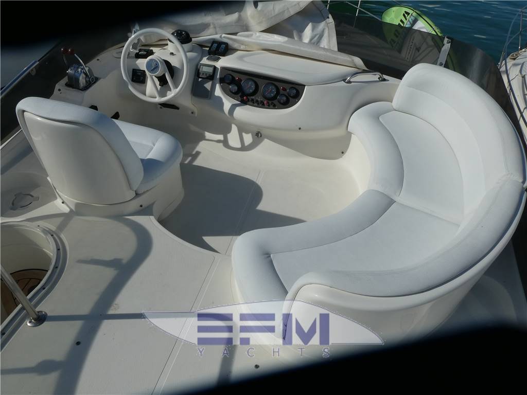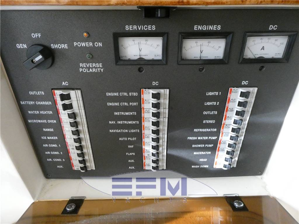 Inside steering position: computer desk, steering wheel in stainless steel and teak steering, various commands (winch, trim, window wipers, side windows, search and navigation lights, chain cleaner, trumpet, extractor fans and engine room. Complete electronic instrumentation Raymarine also double interfaced on the Fly: multifunction display Autohelm Tridata st 600, 2 radiotelephone VHF Shipmate RS 8400, Raymarine GPS, chart plotter, rudder angle indicator, magnetic compass, log, echo), synoptic engine instruments and indicators, VDO instruments, microwave, - Sony stereo radio cd + dvd - electronic throttles Cat - engine management computer - Control also double bow on the Fly - TV system - Accessibility and Engine room: Excellent Electrical switchboard and plants: a starboard helm station with good functional and each component. |