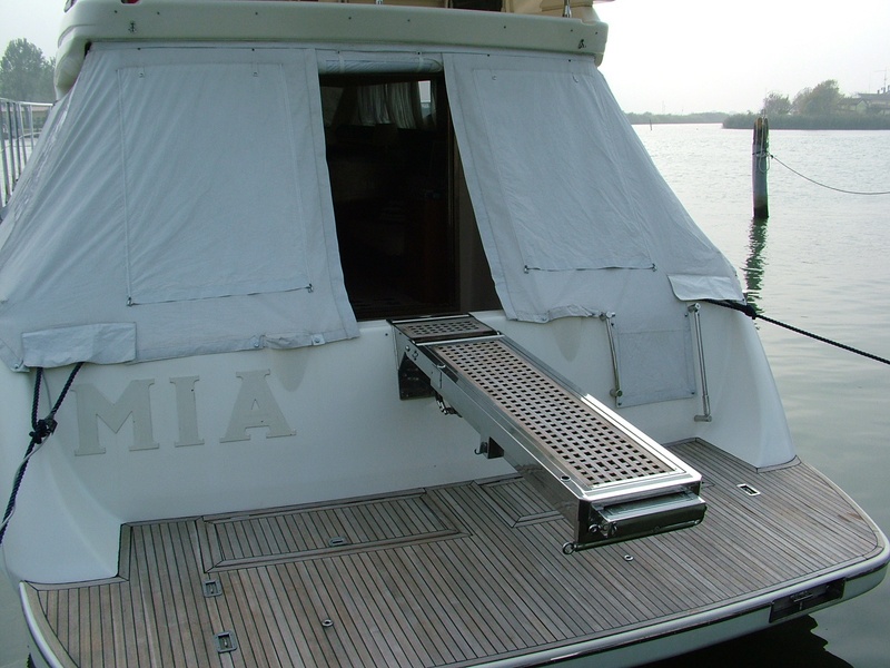 Notas internasNotas de la instrumentación2 brújulas vhf radar speedlog Fishfinder gps Chartplotter piloto automático timón ángulo motor electrónico controles estación meteorológica con reloj y barómetro, thermohygrometer repite instrumental en los altavoces de alta fidelidad estéreo radio volar fuera de salón de Tv instalación Tv terrestre con MAQUINILLA eléctrica de control dualNotas de armamentoElica di prua aire acondicionado en cada habitación con calefacción termostatos reversible passerella ambiental idraulica con cabina teca nueva remoto en retenes de eje de 2009 reemplazada con hidrodinámicos nuevo eje casquillos reemplazados 2009 plataforma popa baño escala tiempo caliente y ducha de agua frÃa en toldos de cabina completas cierre terraza de solarium de cabina cojines nueva cobertura arco volar sobre las moscas pilas nuevas todavÃa mantenimiento constante y toldos de cadena de microcomander escalan baño ducha caliente y frÃa en seguridad de cabina (a verificarse) foto ARCHIVE |