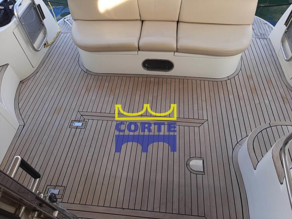 Notas de armamentoAltoparlanti, Aria condizionata (separata dinette e cabine), Bimini (top 4 archi inox sul fly), Boiler, Clima reversibile, Copripozzetto, Cucina, Cuscineria completa, Digitale Terrestre, 2 Frigorifero esterno (sul fly e pozzetto), 2 Frigorifero interno, ICE Maker (portatile), Impianto TV, Microonde, Piastra in vetroceramica, Prese interne 12v, Prese interne 220v, Stereo, Telecamera (in sala macchine), Teli copri finestra (in mesh), Telo Copertura Fly (invernale), Telo coprisedile (fly), Tendalino (invernale pozzetto), 3 TV, WC marino elettrico, Monitor con telecamere in sala macchine