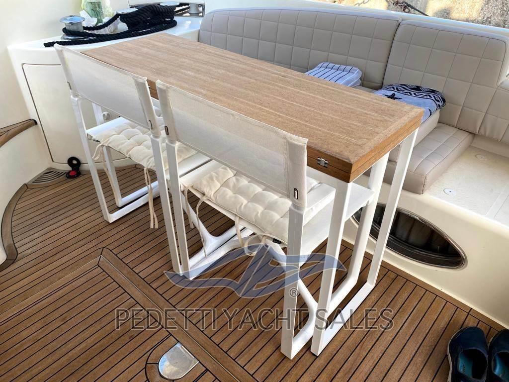 Notas de armamentoAltoparlanti, Antenna Satellitare TV, Aria condizionata, Barometro, Binocolo, Boetta fumogena, Boiler, Carte nautiche, Cassetta di pronto soccorso, Cinture di salvataggio, Clima reversibile, Cuscineria fly, Dotazioni di sicurezza entro 50 miglia, Frigorifero interno (N°2), Giubbetti di salvataggio, Impianto acque nere, Impianto TV, Prese interne 12v, Prese interne 220v, Radio AM/FM, Razzi a paracadute a luce rossa, Riflettore Radar, Salvagente anulare con cima munita di boetta luminosa, Serbatoio Acque Nere, Strumenti da carteggio, WC marino elettrico, Zattera di salvataggio