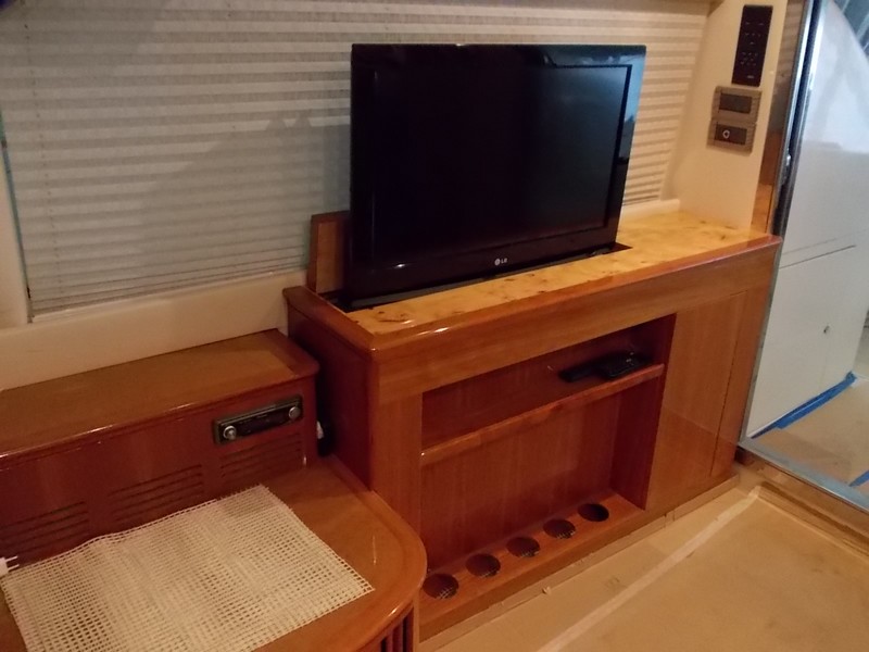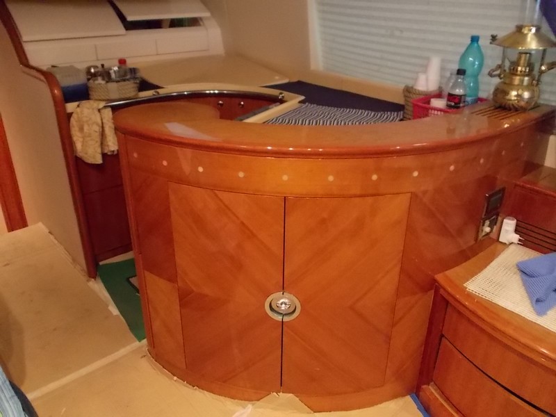 Notas internas3 cabañas-3 baños + cabina de tripulación doble cabina de proa con cuarto de baño privado 2 camarotes con camas planas y 2 baños con ducha cabina de popa equipo con baño privado y aire acondicionado suelos porosos, teca sofá azul ALCANTARA + muebles de madera de cerezo brillante sin siquiera un rasguño y abolladuras habitaciones con suelos de moqueta y azul ALCANTARA recorte lateral arriba salón cocina con vitrocerámica y nevera en volar con fregadero y nevera TELEVISOR DE 42 PULGADAS EN STEREO CD DVD MOSTRAR VENECIANO MESA SALÓN CORTINAS