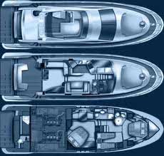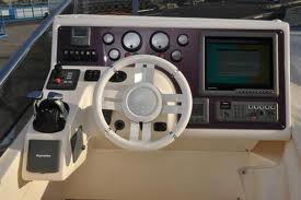 Notas de la instrumentaciónasiento del piloto (la zona elevada del salón), el asiento de ajuste eléctrico es compartida con el sofá comedor por un cambio de nuevo a la consola, optimizado para reducir los reflejos y aumenta el ángulo de visión, incluyendo: La maniobra de mando, cuentarrevoluciones temperaturas del motor y la presión, alarmas, control de las aletas, hélices de proa y popa, molinete, bombas de achique, sonda y lavacadena, Tridata, piloto automático, VHF Raymarine 240E, el compás magnético. controles del motor son de comandos electrónicos, mini.