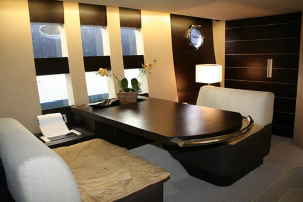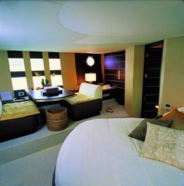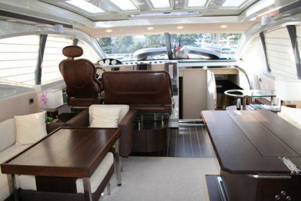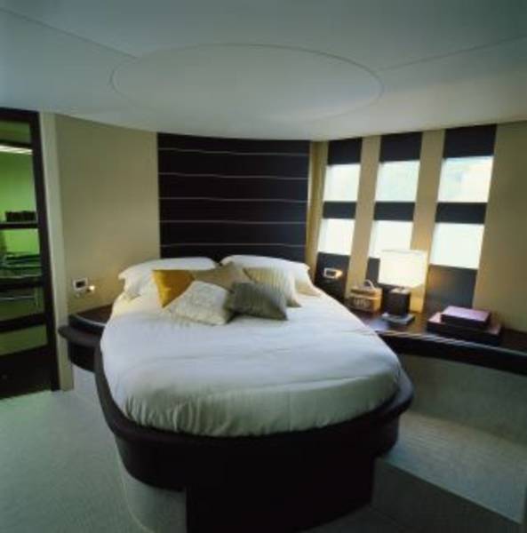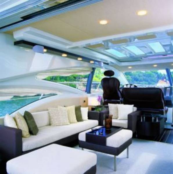Notas internassubdivisiones y caracterÃsticas: el salón, la puerta de la cabina con cristal templado en las casas a la izquierda un salón con un sofá en una pared, asiento silla y mesas bajas convertibles en una de las cuales, con la puerta completamente abierta, se mueve hacia la cabina del piloto y sirve como silla a la mesa del comedor al aire libre, por el contrario, en el lado de estribor, la mesa de comedor en wengué y la base de vidrio que se encuentra en el televisor de pantalla 30''LCD; la pared de un sofá de tres plazas.aquà es el suelo en madera de wengué y la alfombra y un detalle significativo es el techo duro, transparente, abierto ya con el sistema eléctrico para airear a los vivos ya brillante.por lo tanto, en el futuro, de ir por las escaleras con distintos y adyacente a la zona de dormitorio a la izquierda y la derecha en la cocina.la división ve el arco tiene una cabina VIP con cama doble y baño privado, espalda y lado izquierdo de cabina con baño dos camas individuales que se accede desde el pasillo frente al compartimento que alberga las lavadoras-secadoras y hacia atrás, pero aún en medio del barco, el camarote principal con cama de diagonal y comedor, muy luminoso gracias a los seis ventanas cuadradas.el cuarto de baño tiene una ducha en un cuarto separado con doble salida del agua y el lavabo, muy elegante, de cristal con barras de acero inoxidable en la cocina: con acceso independiente, muy estéril y minimalista, tiene una placa vitrocerámica de cuatro fuegos, fregadero de doble Rincón, microondas-grill, nevera 270 litros campana, en la cocina hacia abajo y un azimut tÃpico móvil con cajones para los platos (Alessi) y los platos.