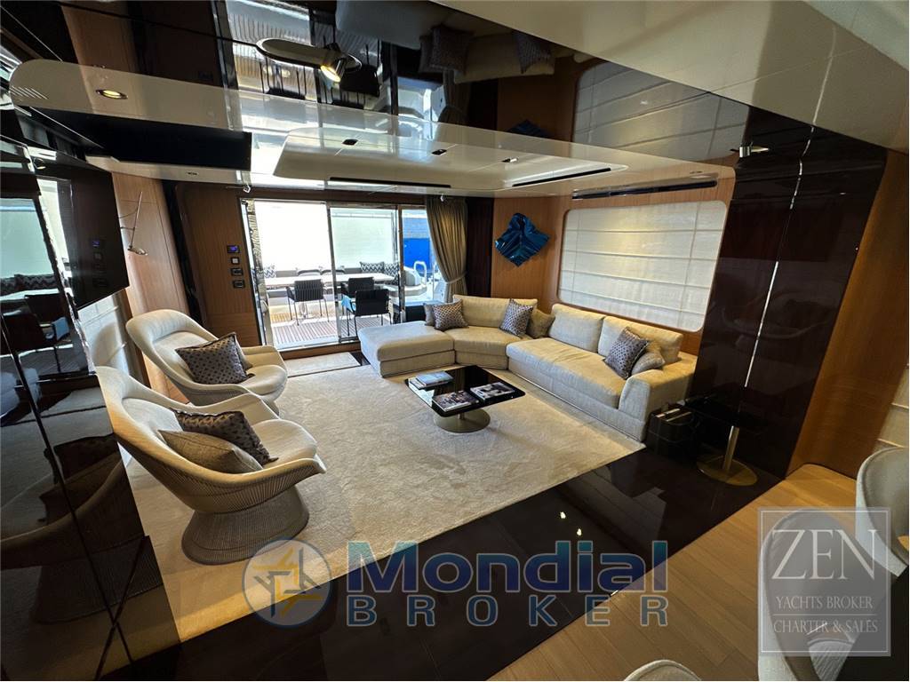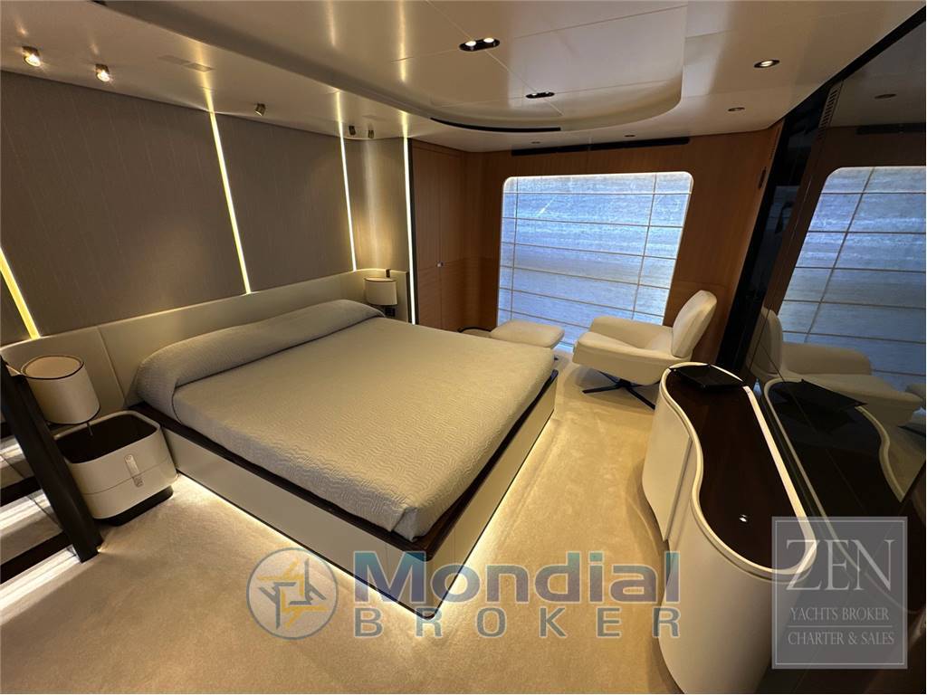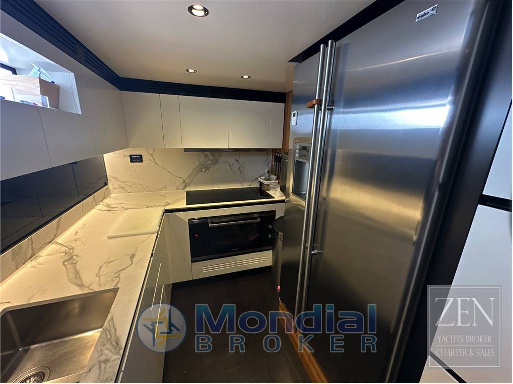 Notas internasPozzetto con tavolo e sedute, tenda privacy elettrica. 4 cabine e 4 bagni di cui: cabina armatoriale sul ponte principale con vetrate sulle murate. Ampio bagno dell'armatore. cabina VIP con bgano nel ponte secondario 2 cabine ospiti di cui una con letti singoli ed una con letto matrimoniale entrambe con bagno privato. Cucina attrezzata sul ponte principale con doppio accesso. Notas de la instrumentaciónElettronica di navigazione completa SIMRAD con schermi touch screen sia sulla postazione di comando esterna.(flybridge) che interna.Radar Furuno Impianto stereo Fusion TV satellitare con antenna Domotica di bordo Notas de armamentoPinne stabilizzatrici CMC (220V)2 generatori da 27 kw cad. Elica di prua ed elica di poppa Dissalatore Idromar 180 l/H 2 Boiler 80 litri 2 autoclavi Flap Humpree con autotrim Aria condizionata Condaria/Dometic 180.000 BTU Doppio tonneggio a prua Doppio tonneggio a poppa |