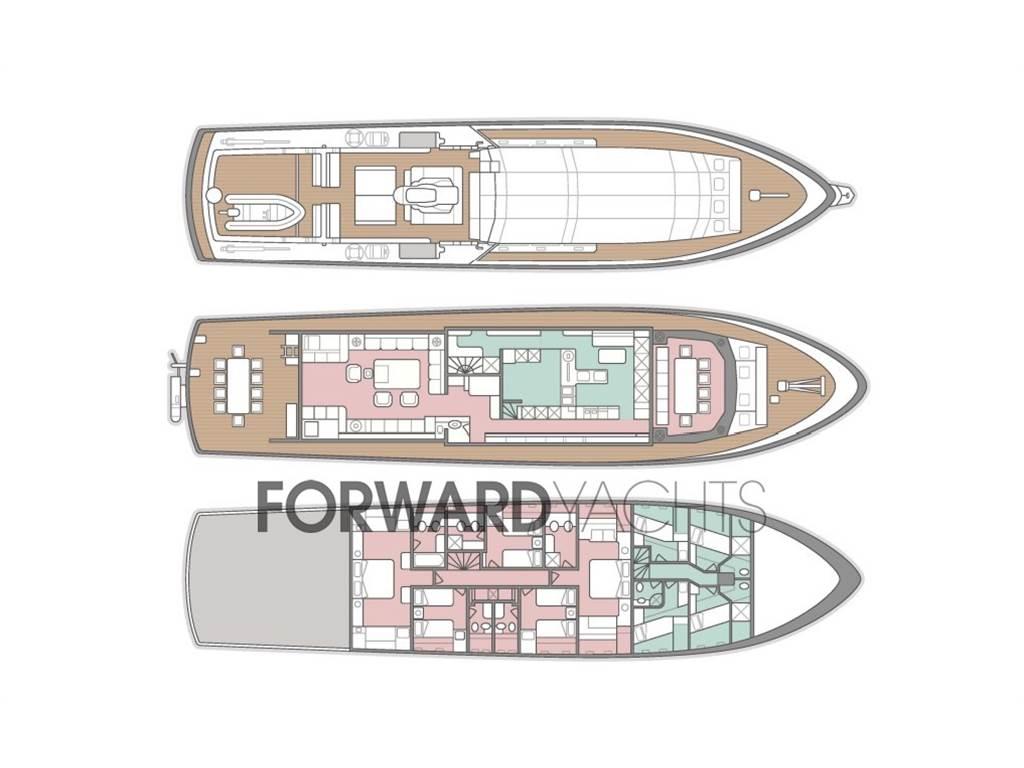 Notas internas2 Doppia in piano, 3 Matrimoniale italiana, 4 Cabina equipaggio, 5 Toilette.