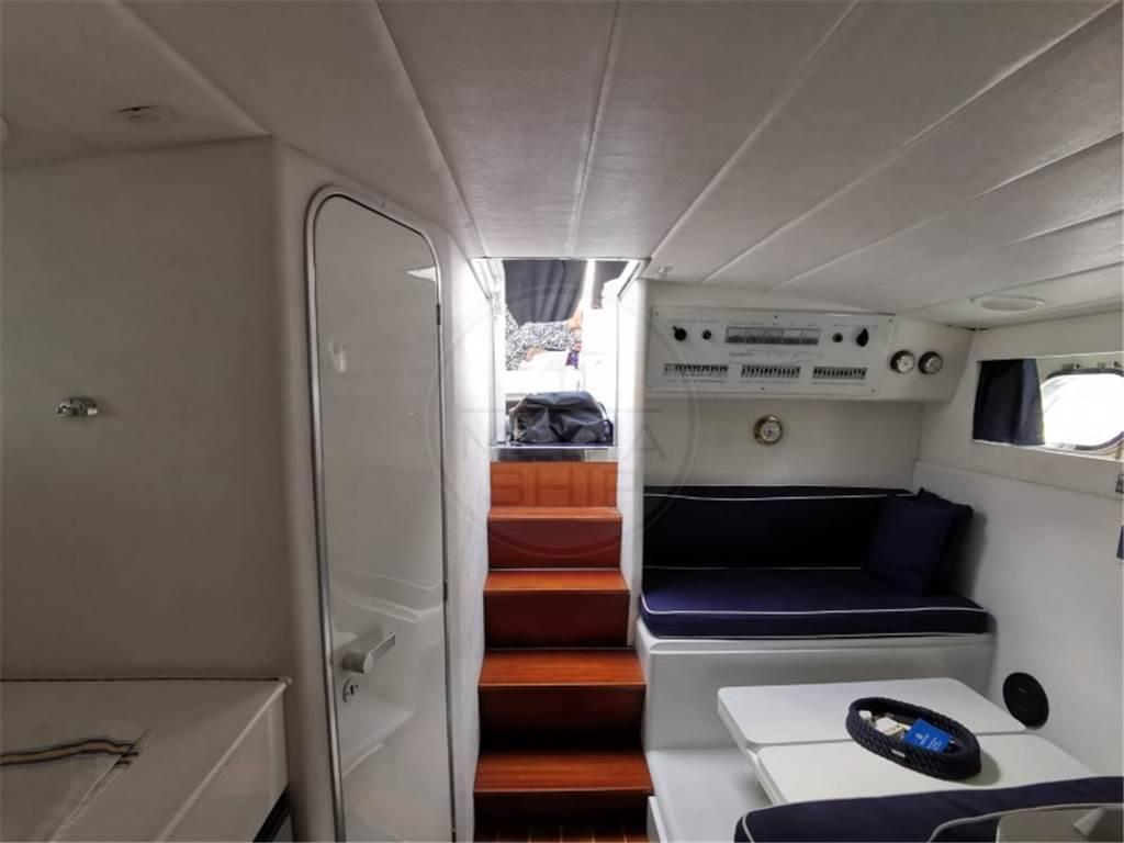 Notas internasNotas de la instrumentaciónBussola, Ecoscandaglio, GPS, Log, Radio VHF.Notas de armamentoAllestimento tecnico e di coperta:Ancora, Passerella, Piattaforma, Pompa di sentina elettrica, Scaletta da bagno, Tavolo pozzetto, Winch. Dotazioni domestiche di bordo: Aria condizionata. Cucina ed elettrodomestici: Fornello (Gas), Frigorifero interno (Electric). Tappezzerie: Bimini. |