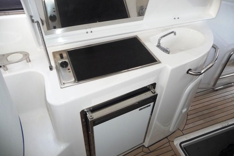 Notas internasNotas de la instrumentaciónBrújula VHF antena GPS + pantalla Chart Plotter color 8 "registro y motor electrónico controles velocÃmetro adornos TV sistema con eléctrico tres terrestre Tv antena radio stereo sistema con CD 2 internos y 2 aletas de altavoces externos con reflector de visor eléctrico con mando electro hidráulico cabrestante eléctrico con control remoto y baterÃa cargador rectificador 45 Ah verificación-panel de control con motores diesel |