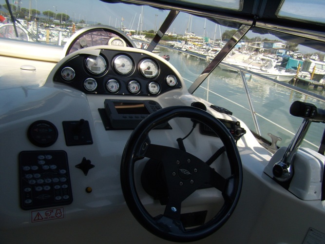Notas internasNotas de la instrumentaciónCompás de VHF con antena externa de GPS Chartplotter Fishfinder registro y controles de motor electrónico cuenta km con ajustes radio estéreo visor con Interior y exteriores altavoces Tv con torno eléctrico digital antena terrestre con cargador electrónico completo del luces del navegación de control remoto con carga múltipleNotas de armamentohidraulica con arco remoto hélice reversible aire acondicionado en cada habitación bimini toldo Rail popa terraza garaje hidráulico de apertura externos completos cojines, teca en bar cabina con refrigerador, estufa y fregadero en la teca de cabina baño plataforma baño escala inoxidable acero caliente y ducha de agua frÃa en el anclaje de cabina w. equipo de seguridad completa de la balsa de cadena (caducidad del cheque) azul y blanco casco fibra de vidrio y teca en perfectas condiciones aletas Tabla de visor con cabina en teca barco en excelente estado doble cabina popa popa doble cabina con dos camas individuales (apéndice para la conversión en cama de matrimonio)-cuarto de baño con ducha-comedor con sofá de cuero, cocina completa con estufa, refrigerador, microondas interna inferior de madera roscado motor de fb tierna de tableros para conformidad CE CE CategorÃa "B" de la licitación |