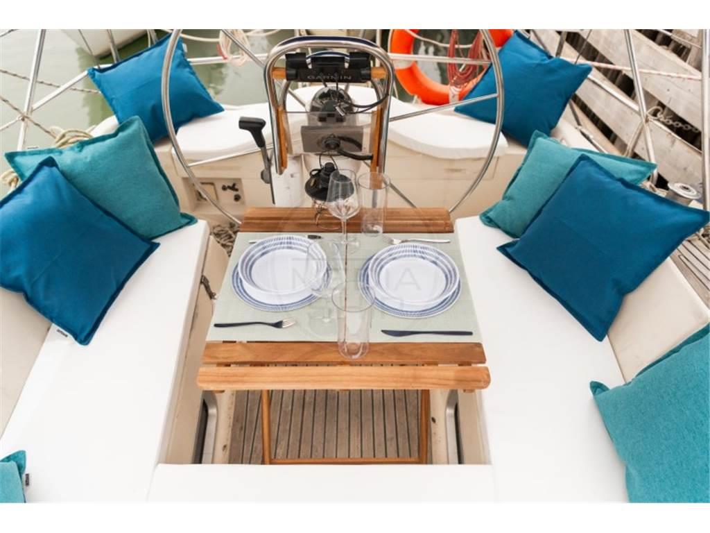 Notas internasNotas de la instrumentaciónBussola, Ecoscandaglio, GPS, Log, Pilota automatico, Radio VHF, Stazione vento.Notas de armamentoAllestimento tecnico e di coperta:Ancora, Passerella, Piattaforma, Scaletta da bagno, Tavolo pozzetto, Winch. Dotazioni di sicurezza: Zattera di salvataggio. Intrattenimento: TV. Cucina ed elettrodomestici: Fornello (Gas), Forno, Frigorifero interno (Electric). Tappezzerie: Bimini, Cappottina. Vele: Randa, Genoa. |
