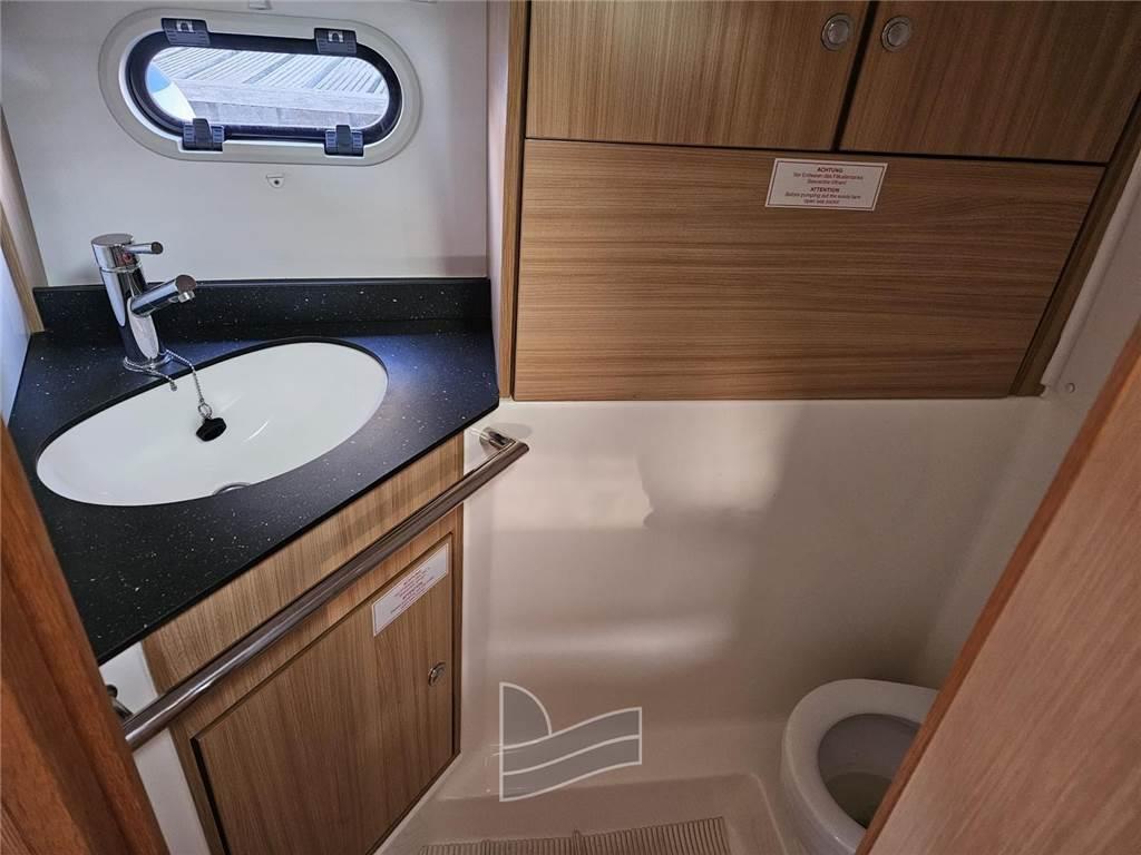 Notas internasNotas de la instrumentaciónBussola, Contamiglia, Ecoscandaglio, GPS, Plotter con antenna GPS.Notas de armamentoAllestimento tecnico e di coperta:Allarme motore, Ancora, Doccia esterna, Elica di prua - bow thruster, 2 Flap elettrici, Lavandino nel Pozzetto, Piattaforma (di poppa in teak), Pompa di sentina elettrica, Pompa di sentina manuale, Presa 220V banchina, Rollbar, Salpa Ancore Elettrico, Scaletta da bagno, Tavolo pozzetto, Tromba. Dotazioni domestiche di bordo: Prese interne 12v, Prese interne 220v, WC marino elettrico. Intrattenimento: 2 Altoparlanti, Radio AM/FM, Stereo. Cucina ed elettrodomestici: Cucina, Frigorifero interno, Piastra in vetroceramica. Tappezzerie: Bimini, Copripozzetto, Cuscineria di poppa, Cuscineria di prua. |