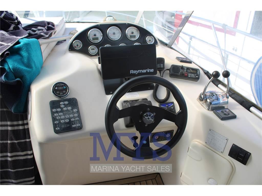 Notas internas1 BAGNO 1 Cabina matrimoniale armatoriale di prua 1 Cabina doppia con letti in piano trasformavile in letto matrimoniale 1 Salotto con divanetto,tavolo e TV trasformabile in posto letto 1 Cucina completa di lavandino,fornello,piastra elettrica,frigo e micronde 1 Bagno completo di lavabo,doccia e WC marino elettrico Notas de la instrumentaciónAllarme motoreAncora Apertura Vano Motore Elettrica Autoclave Altoparlanti Aria condizionata Batterie Boiler Bussola Caricabatterie Comando motori elettronico Ecoscandaglio Elica di prua Flap idraulici GPS Impianto antincendio Indicatori Flaps Impianto TV Inverter Luci di cortesia Passerella Piattaforma (MAGGIORATA) Raddrizzatore Salpancora Elettrico Stereo Tromba VHF Notas de armamentoCappottinaCopripozzetto Cuscineria completa Doccia esterna Lavandino nel Pozzetto Pavimento interno in legno Pozzetto Teak Presa 220V banchina Rollbar Scaletta da bagno Tavolo pozzetto Tavolo Salone Abbattibile Tendalino |