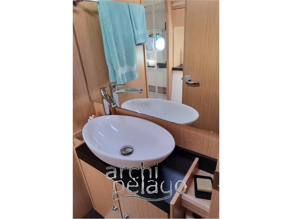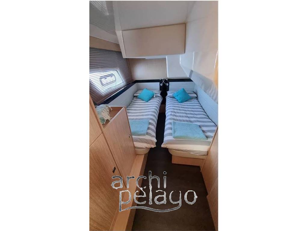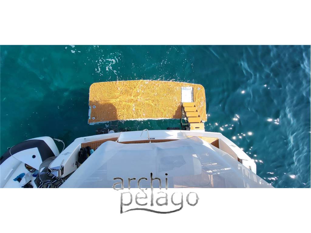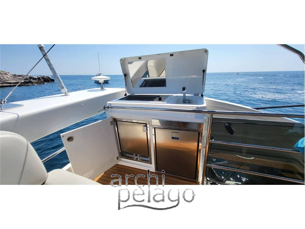 Notas internas- Due cabine ospiti con letti in piano trasformabili in letti matrimoniali. - Bagno degli ospiti completo di lavabo, WC e box doccia. - Sofa in dinette trasformabile in comodo letto matrimoniale. CUCINA: - nr 2 fuochi in VCR - Lavello a due vasche in acciaio inox - Forno microonde - nr 2 frigoriferi con congelatore. WET BAR sul FLY: - Grill - Lavabo - Frigo con congelatore - Icemaker Notas de la instrumentaciónELETTRONICA:- 2 Joystick - Doppi Comandi motore sul fly e in coperta - VHF SIMRAD RS40 - AIS - VHF Portatile - Radar HALO 24 - GPS - Autopilota SIMRAD EVO3 12" - Telecamera a poppa per manovre - Ecoscandaglio con trasduttore Activ Imaging SIMRAD a specchio di poppa - Bussola - Faro orientabile con controllo remoto Notas de armamentoACCESSORI:- Elica di prua - Flaps - Ancora in acciaio inox - Verricello ancora - Porta parabordi a prua in acciaio inox - Gruppo elettrogeno - Boiler - Autoclave - Carica batterie - Aria condizionata a 3 zone convertibile in riscaldamento - Controllo domotico controllabile da Ipad - TV digitale - Impianto stereo con bluetooth e autodiffusione in 3 zone (dinette, pozzetto, fly) - Luci esterne con controllo remoto - Lavatrice 5kg - Tavolo in dinette abbattibile e trasformabile in letto matrimoniale ampio - Due pouf in pelle in dinette contenitivi e trasformabili in poltrone con schienale - Predisposizione per TV in salone - Tavolo pozzetto per 8 persone - Pozzetto a configurazione varibile a piacimento grazie a rotaia per divano e tavolo - Plancetta basculante idraulica con scaletta annessa tipo spiaggetta - Passerella manuale in carbonio a scomparsa - Doccetta di poppa - Tavolo allungabile sul FLY - Ecoteak sintetico di ultima generazione su FLY, plancetta, pozzetto - Cuscineria interna completa in pelle bianca - Cuscineria di prua, poppa e FLY completa in ecopelle bianco perla - Coperture complete su divanetti pozzetto e FLY e tavoli - Telo para sole seethrough verticale per pozzetto - Teli copertura barca completi: camper cover grigio con porte e finestre a cerniere, copertura totale del FLY, teli parasole seethough per parabrezza e finestre laterali, bimini top in tessuto grigio. |