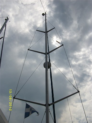RAYMARINE E80-completa instrumentación incluÃa un extractor con varilla roscada de acero inoxidable, conectado en la parte inferior a una placa de acero inoxidable, situada en la parte inferior del calavele, bajo la escalera de acceso y hasta una placa por debajo del techo de calavele, en la zapata de anclaje de la rodeó de Estay colocado en cubierta; Aplicar a un tensor de acero inoxidable Selden en el estay de proa, con el fin de garantizar la mejor tensión de la misma; |